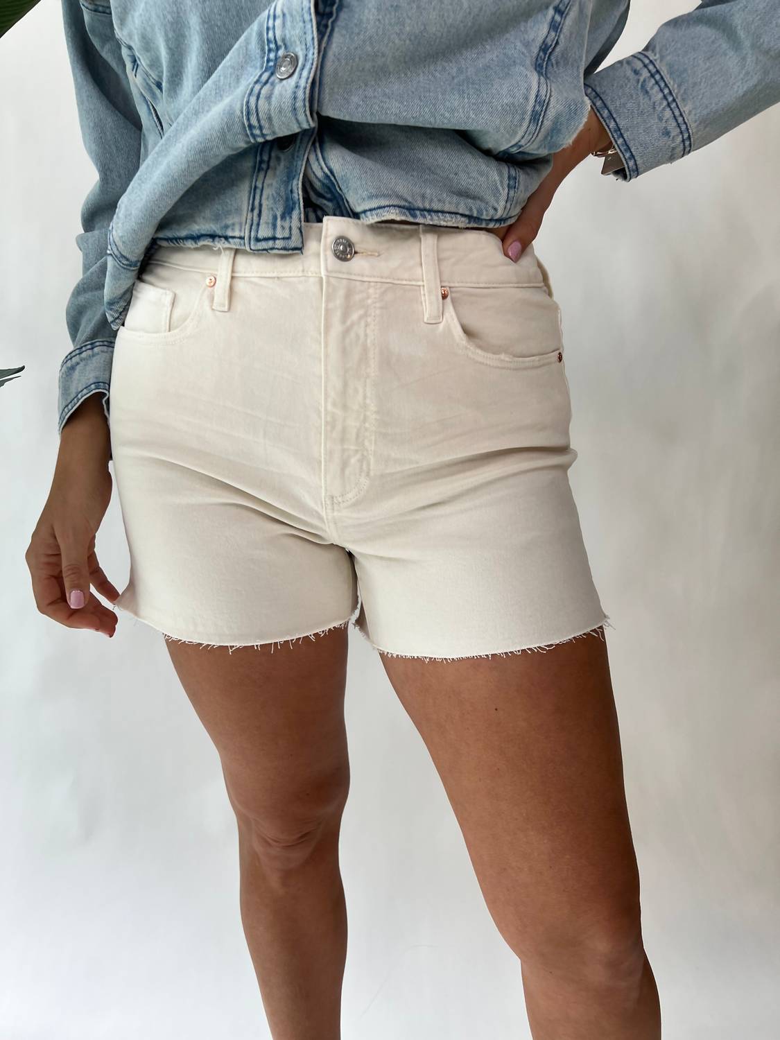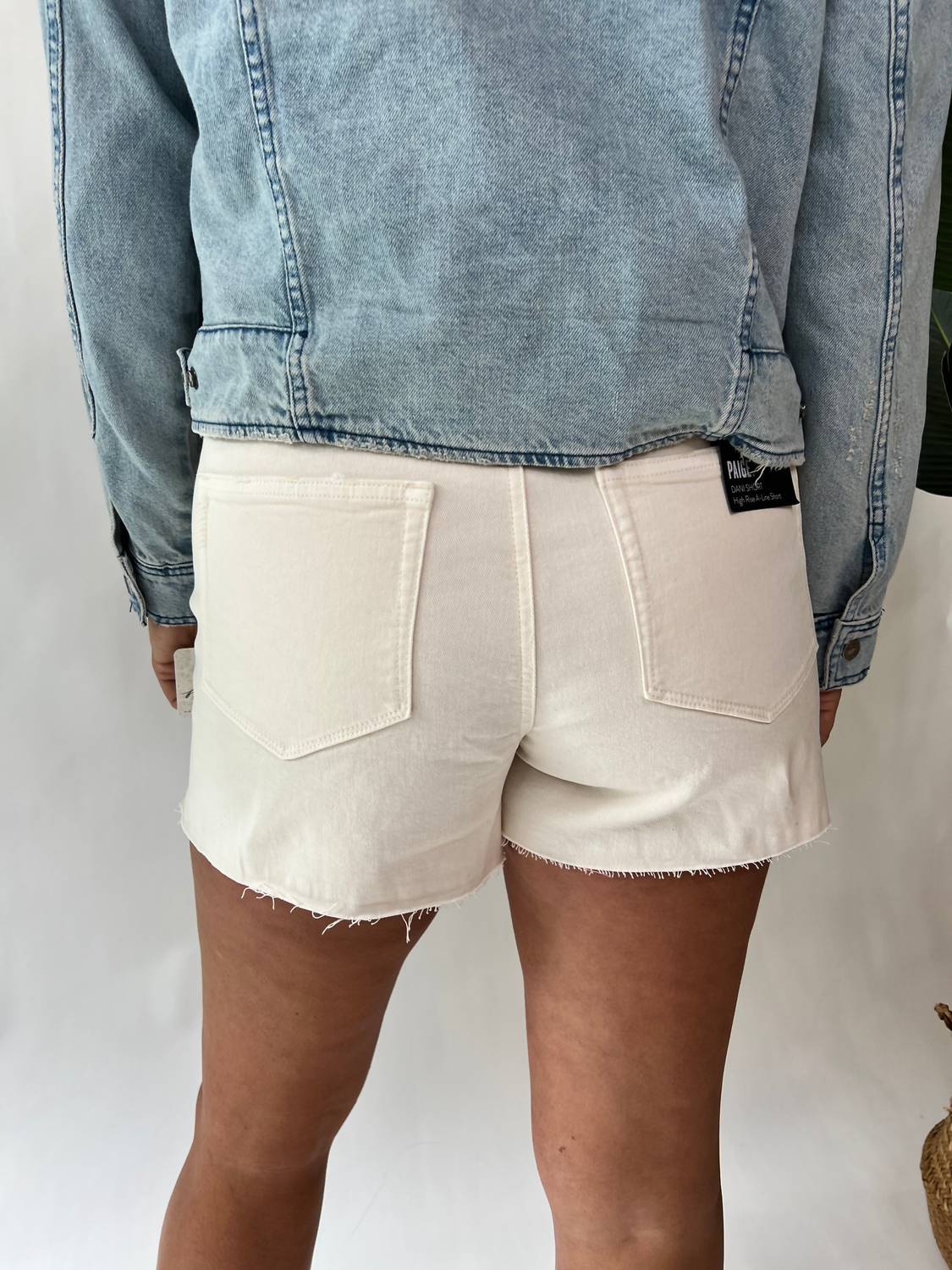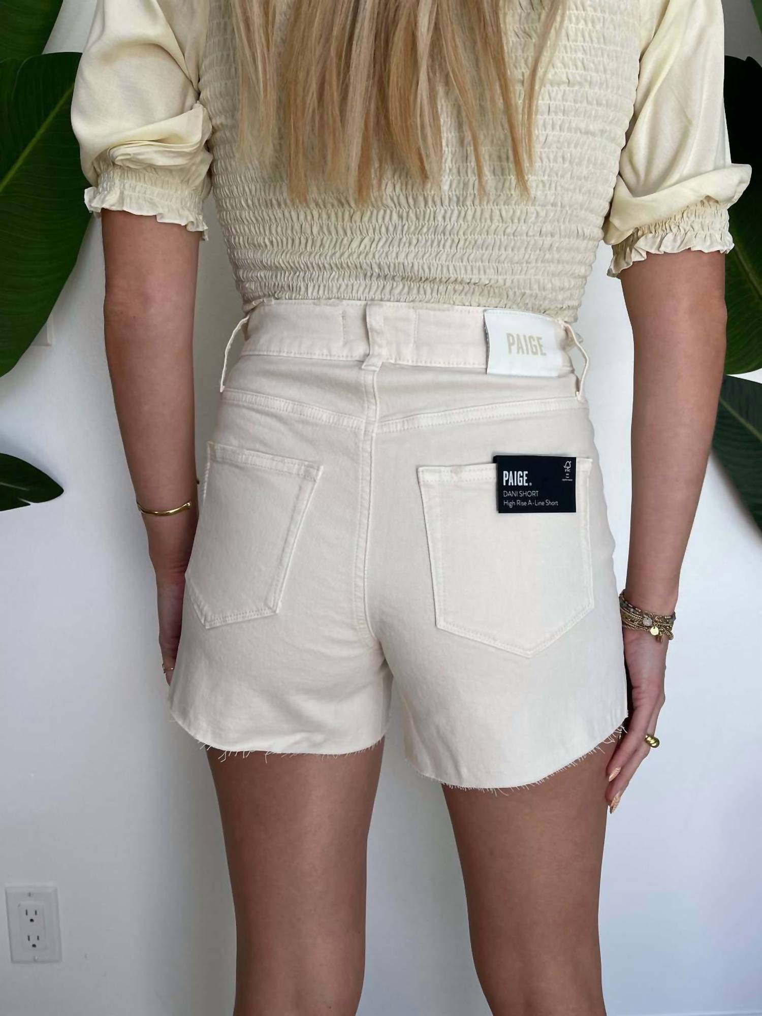 Not only cute but extremely comfortable. The jean shorts you will be reaching for all season long. Absolutely your new closet staple. The Paige Dani in Crisp White is the perfect mix of simple and sweet with just the right amount of vintage edge. Raw hem. A line. High rise. Rise: 12”. Inseam: 4”. Leg Opening: 22.75”. 98% Cotton, 2% Elastine.Machine Wash Inside out and Tumble Dry Low. Made in Mexico.