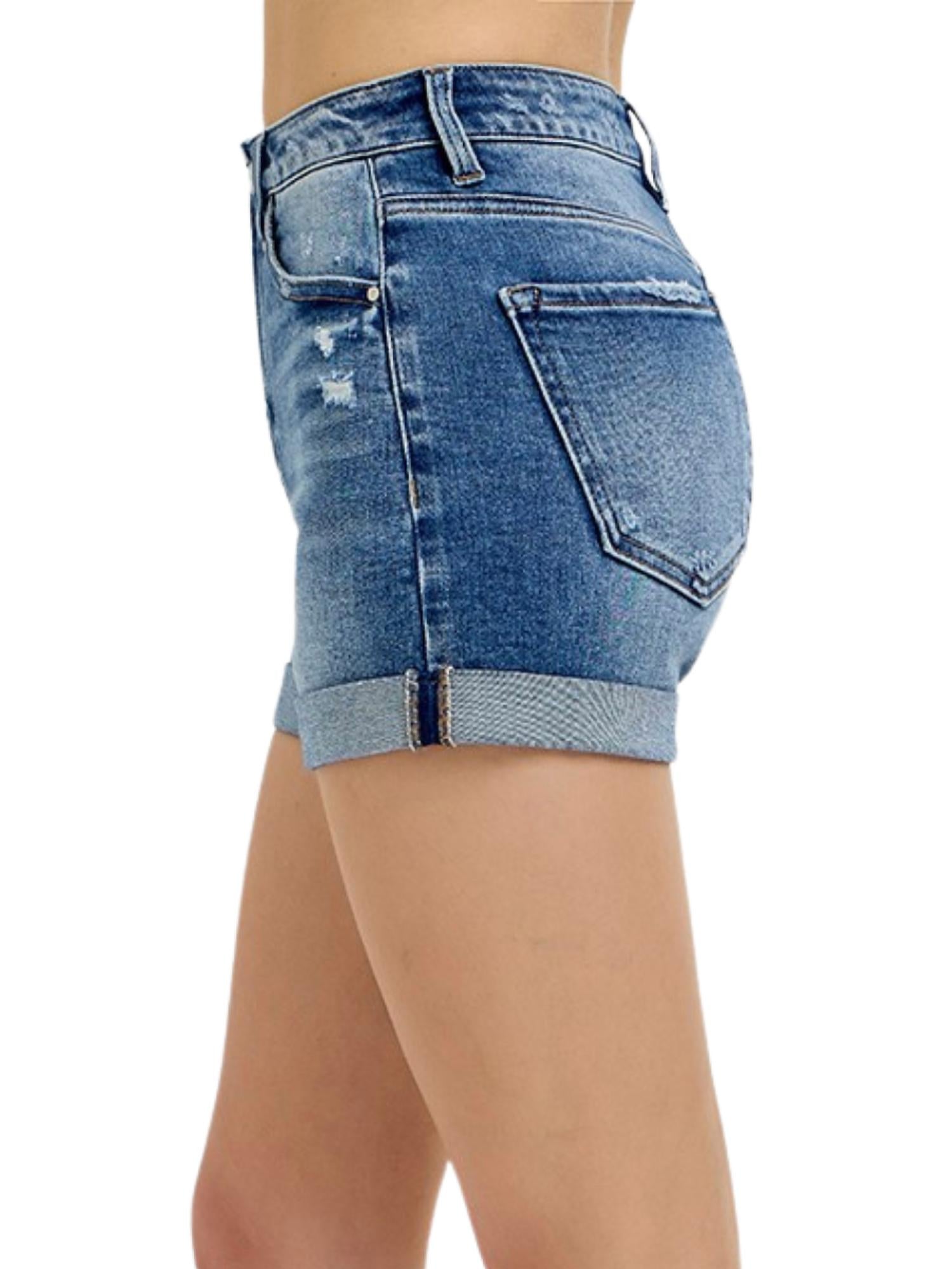 Jean shorts so versatile, you can literally wear them with anything. Upgrade your casual wardrobe with the High Rise Rolled Up Denim Shorts by RISEN in a chic dark wash. These women's jean shorts feature a high-rise fit that flatters your silhouette, complemented by a trendy rolled-up hem and practical pockets. Closure: Button closure. Care: Machine wash and tumble dry. Perfect for spring travel or Valentine's Day outings, these minimalist shorts add a touch of effortless style to any look.