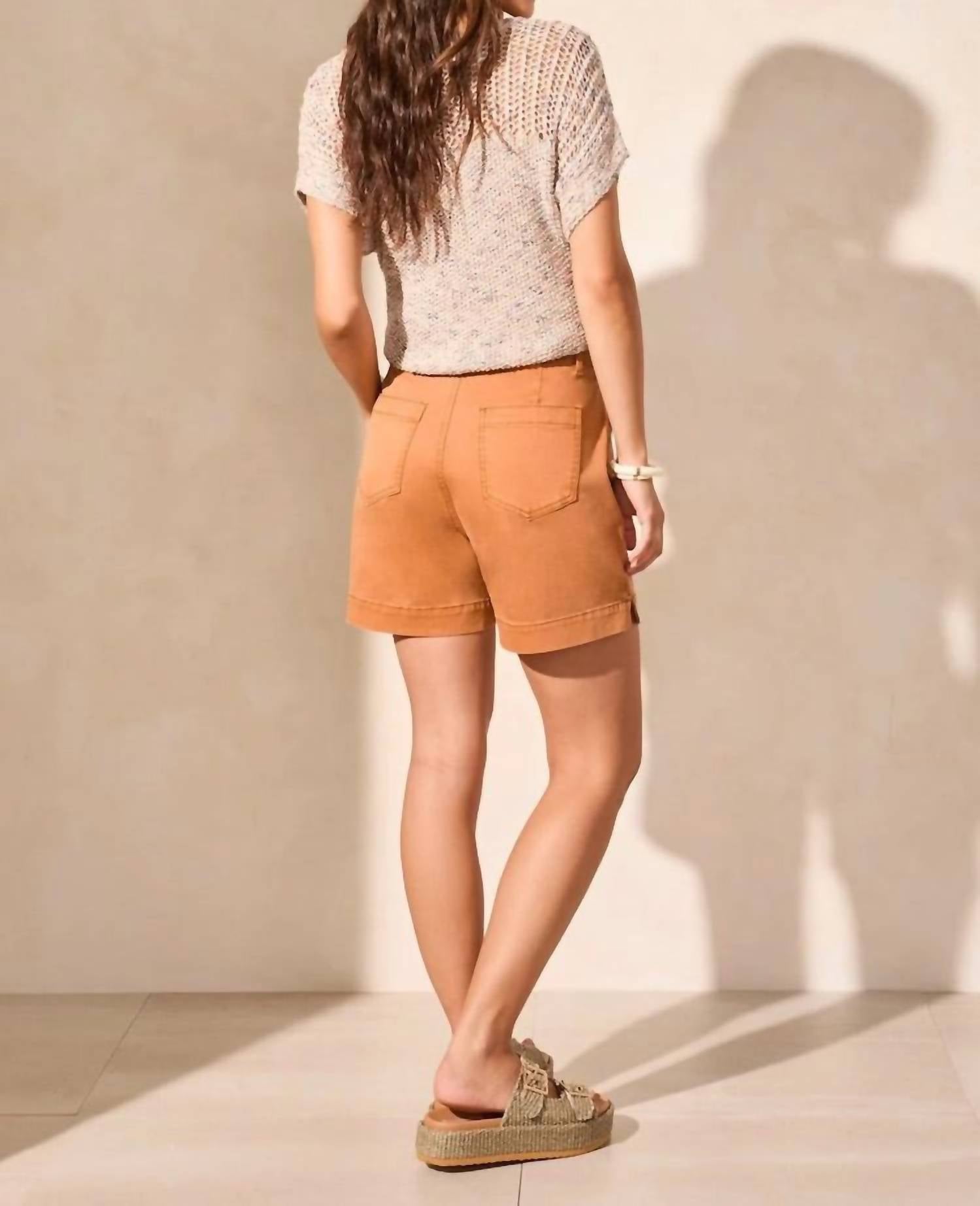 Introducing the Pull On Shorts With Side Slits by TRIBAL, your go-to choice for effortless fashion in a rich Pinecone color. These women's jean shorts are crafted from a comfortable cotton blend, offering a solid pattern perfect for spring travel or holiday occasions like Thanksgiving. With convenient pockets and a pull-on closure, they're designed for ease and style. Care: Machine wash and line dry to maintain their look.