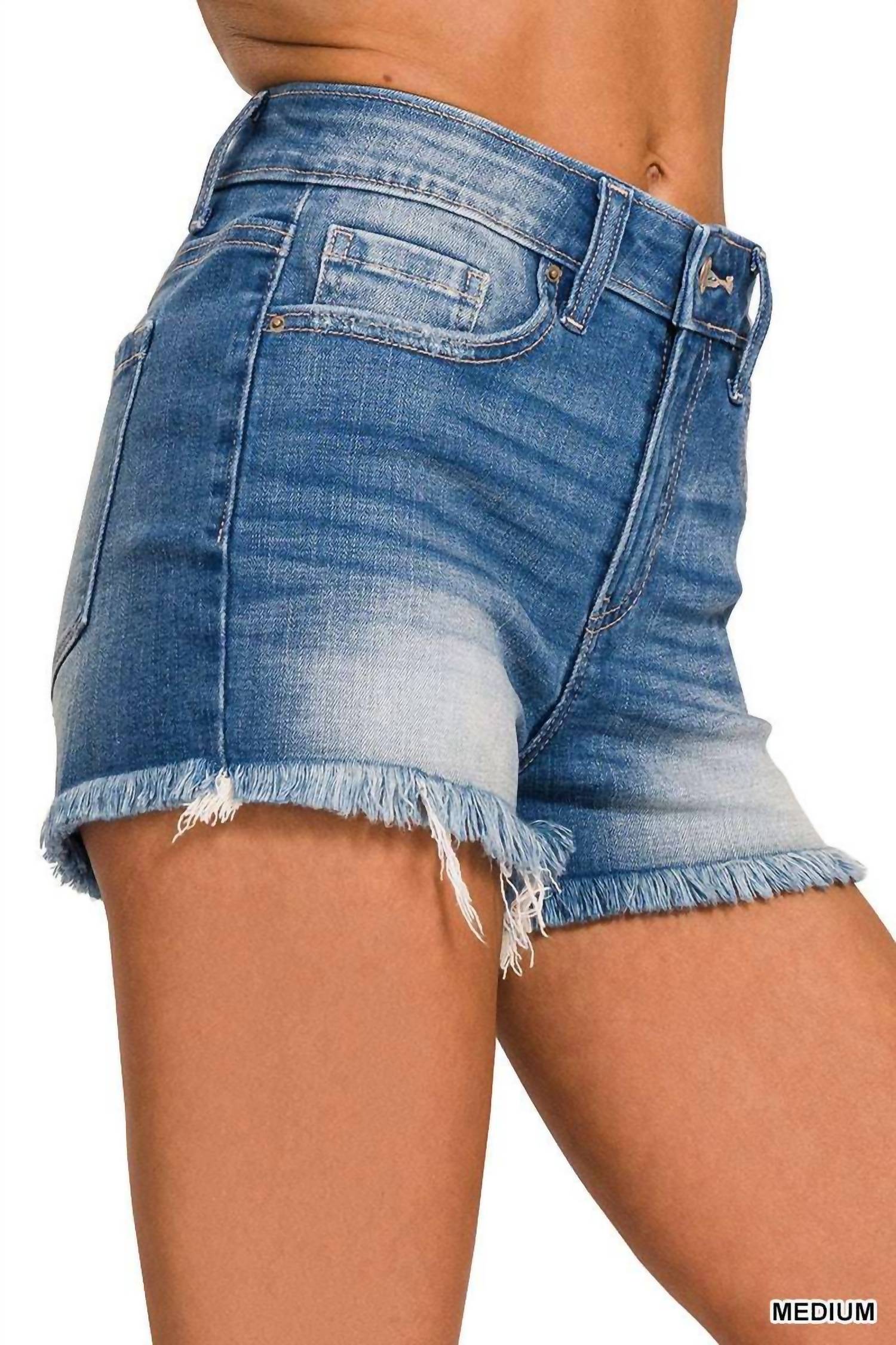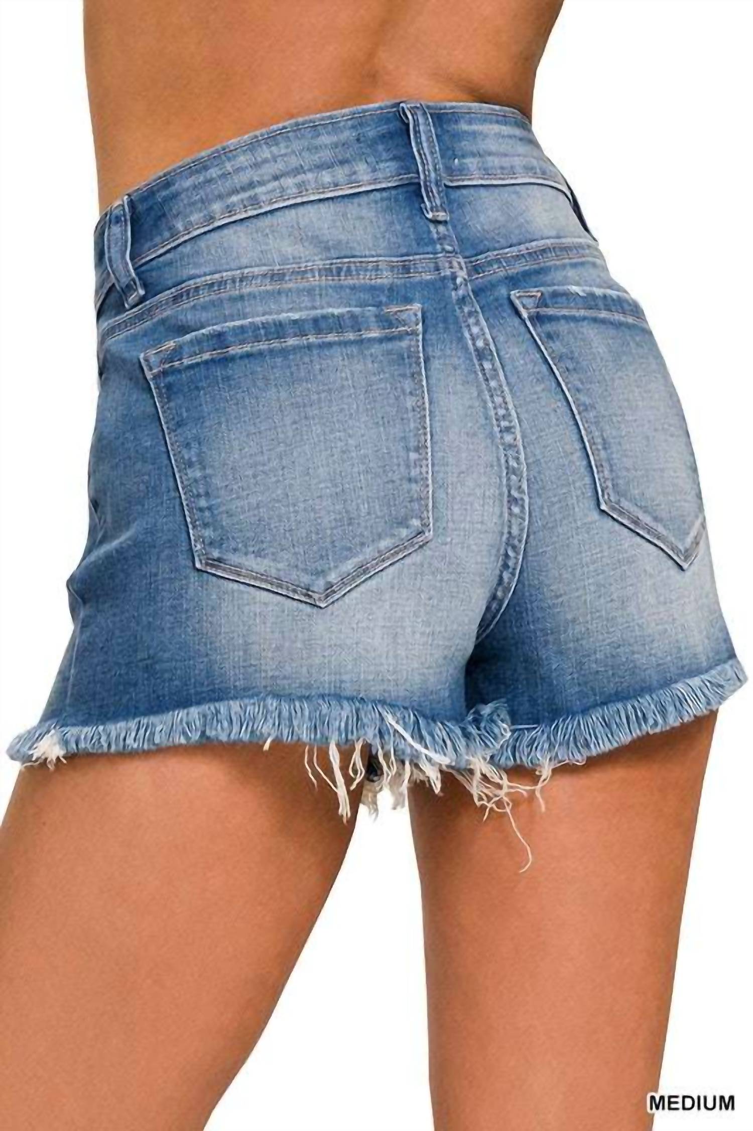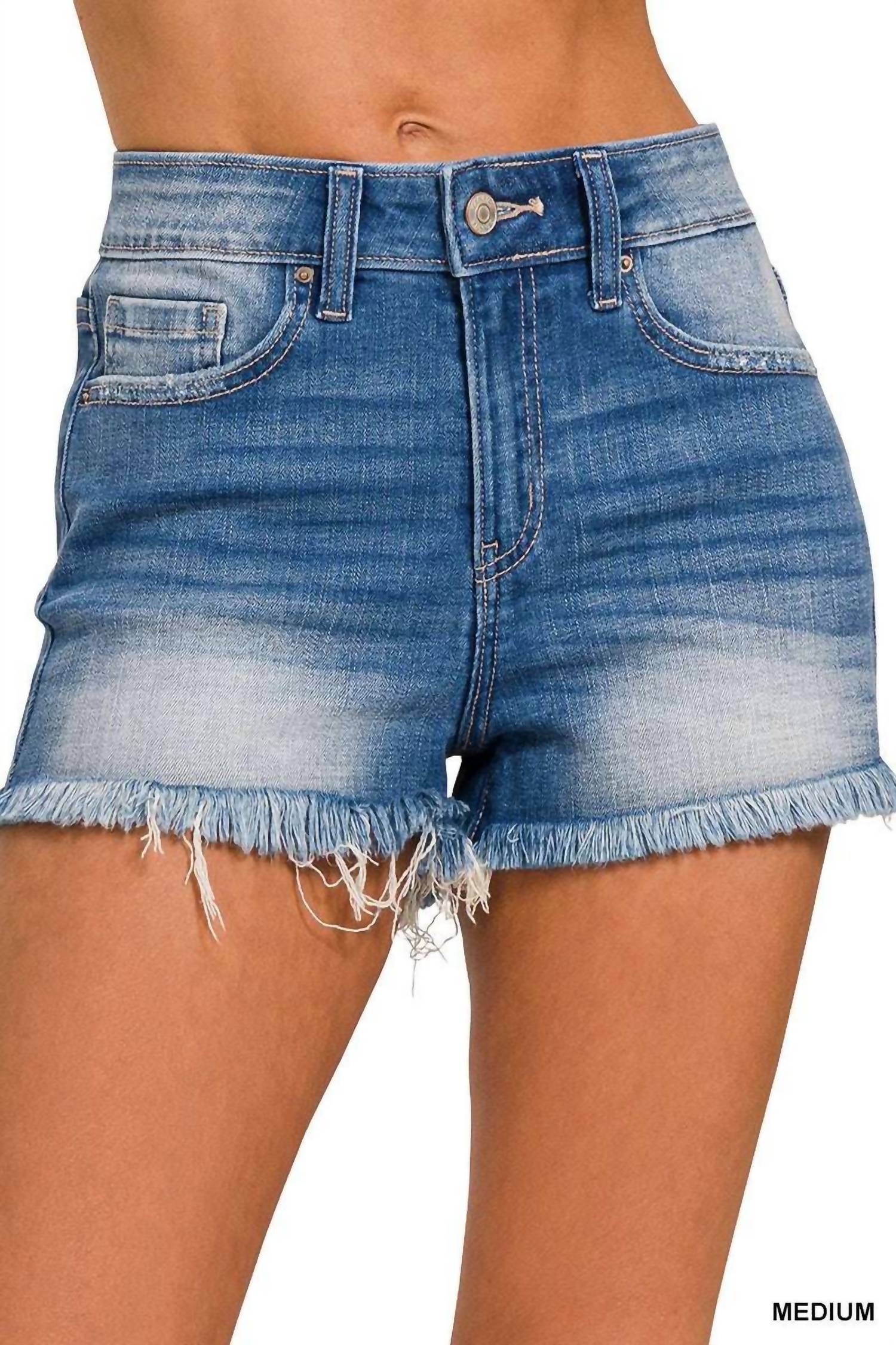 Jean shorts so versatile, you can literally wear them with anything. Meet the Amy Denim Shorts by ZENANA, showcased in a versatile Medium Wash. These shorts feature a mid-rise waist with a raw frayed hem and stretch denim for a perfect fit. Composition: 98% Cotton, 2% Spandex. Closure: Button closure. Perfect for warm weather, these shorts promise to be a staple in your summer wardrobe, combining comfort with minimalist style.