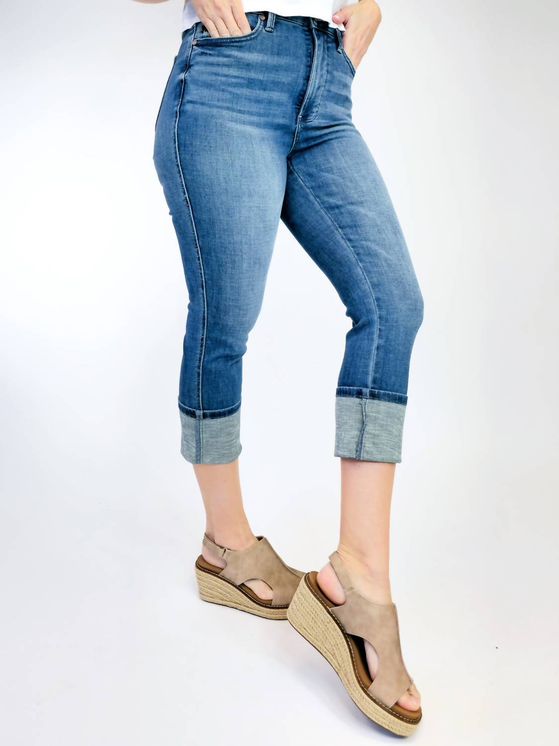 Judy Blue - High Waist Tummy Control Cuff Capri Jeans