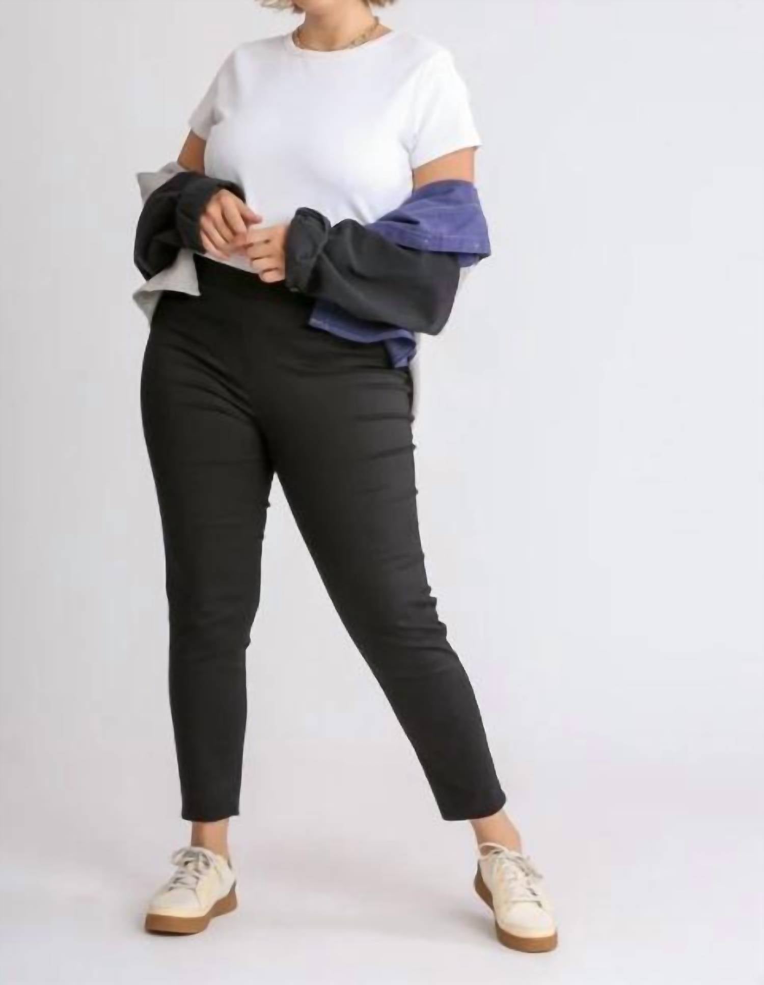 Introducing the Don't Think Twice Leggings by Umgee, a chic and versatile staple for your wardrobe. Designed for plus size women, these black jeggings offer a relaxed fit with a sleek skinny leg. Crafted from a cotton blend of 97% cotton and 3% spandex, they feature a mid-rise waist with a convenient pull-on closure. Perfect for pairing with any outfit, these solid leggings also include pockets for added practicality.
