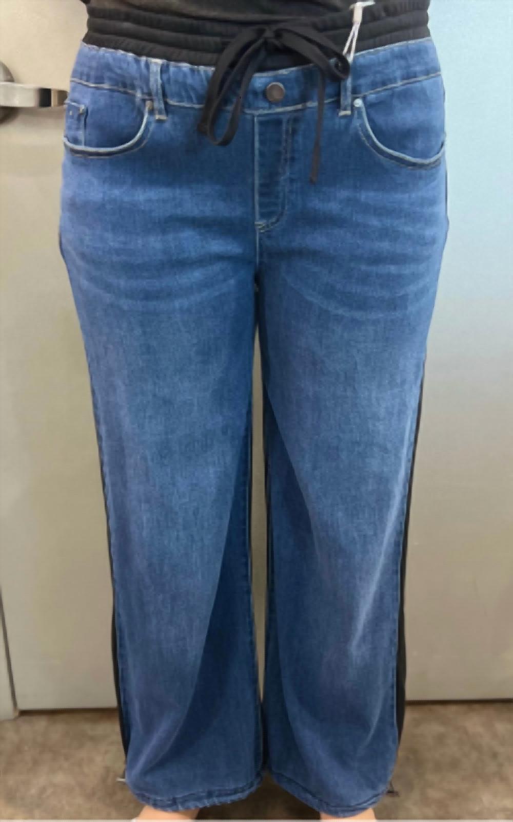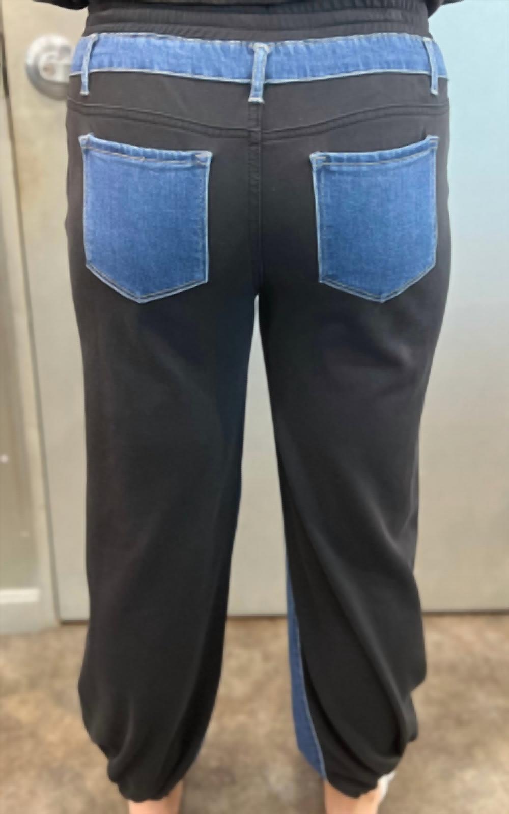 Fit to flatter and so comfortable you could sleep in them. Tractr dark denim jogger with black trim and front adjustable tie and adjustable string bottom. Runs small. Dry clean.