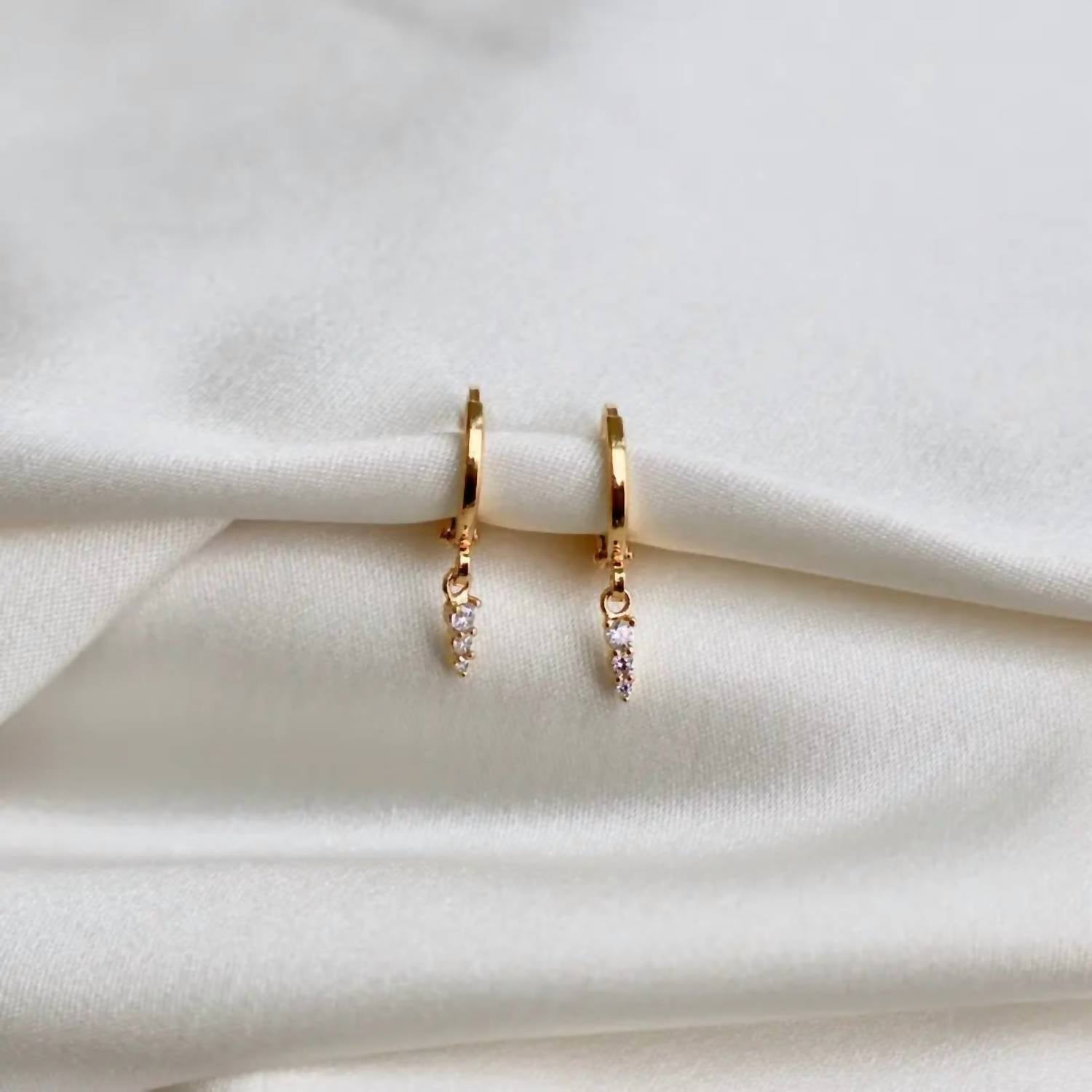 eye-catching earrings for every occasion. Elevate your style with the Women's Cubic Zirconia Stack Trio Huggie Earrings by Katie Waltman. These elegant huggies feature a shimmering cubic zirconia dangle and boast a luxurious gold plating over a brass hoop, adding a touch of sparkle to any ensemble. Measuring a delicate 2mm in length, they are perfect for creating a sophisticated ear stack. Crafted with attention to detail, these fashion earrings are an exquisite addition to any jewelry collection.