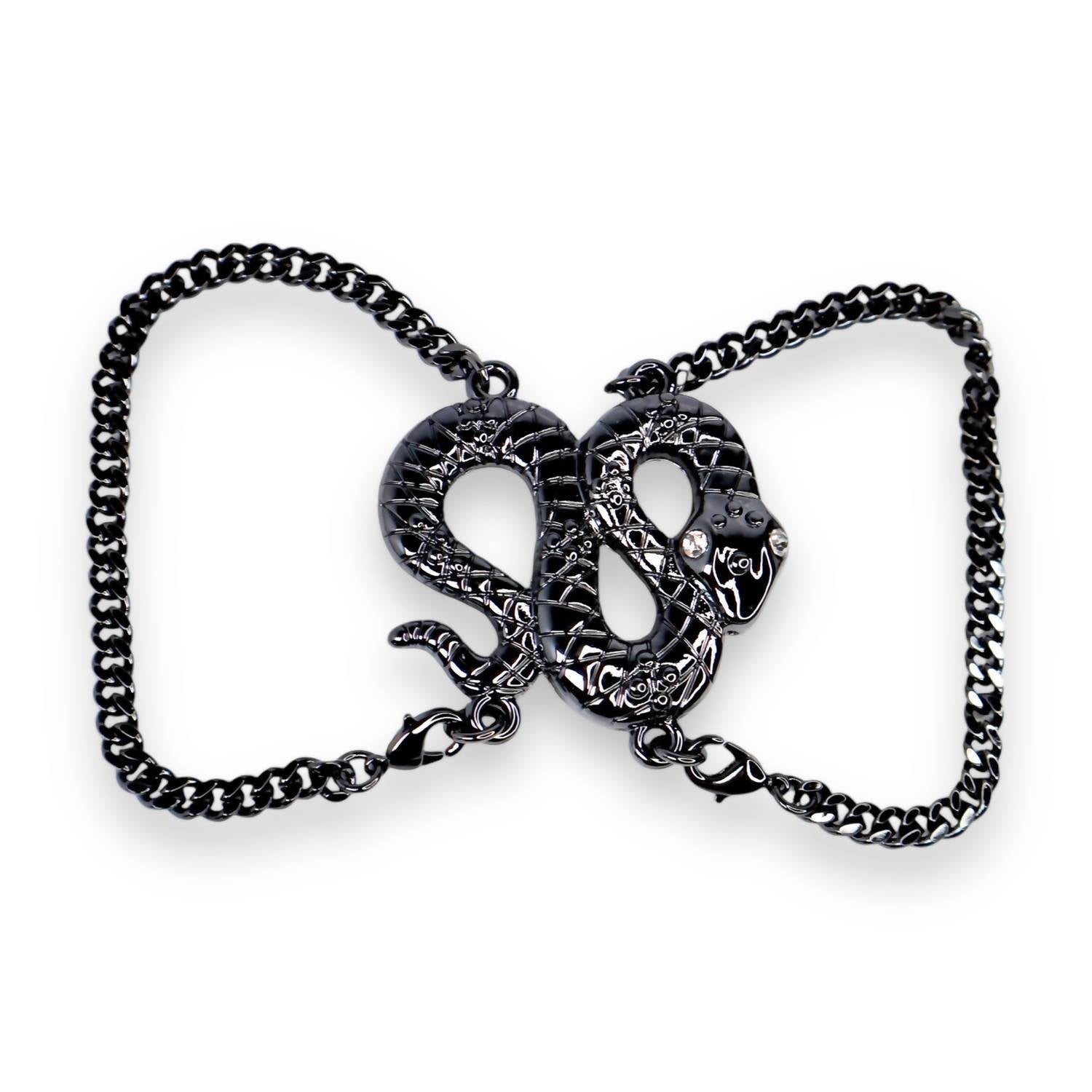 This bracelet will be your favorite go-to piece of the season. Introducing the Women's Python Bracelet by Jagged Halo Jewelry, an exquisite piece that exudes sophistication with its bold coiled serpent design in 18K white gold filled. This fine bracelet, measuring 7.5" in total length, is meticulously crafted and features a unique magnetic clasp for a secure and comfortable fit. Handmade to perfection, it symbolizes power and transformation, seamlessly adding fierce elegance to any ensemble. To maintain its lustrous appearance, avoid exposure to water, perfumes, and lotions.