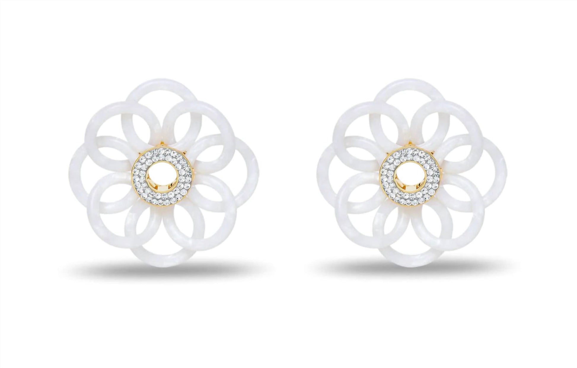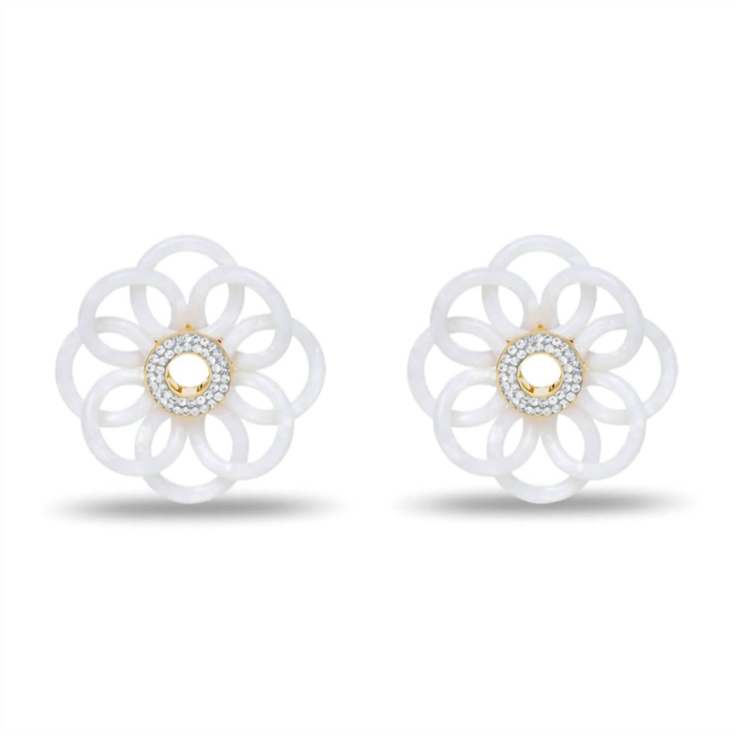 eye-catching earrings for every occasion. Add a radiant floral touch to your look with the Women's Mother of Pearl Marigold Earrings by LELE SADOUGHI. Beautifully crafted from luminous white mother of pearl and accented with a gleaming goldtone center, these sculptural earrings embody timeless elegance with a modern, feminine charm—perfect for elevating any ensemble.