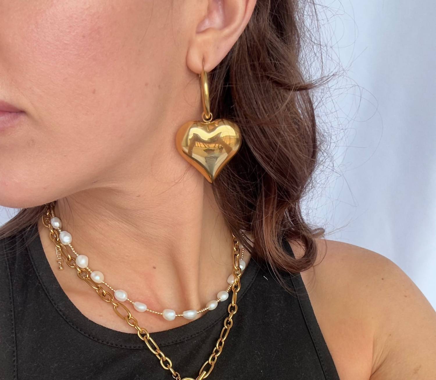 Chansuttpearls - Women's Oversized Bubble Heart Earrings