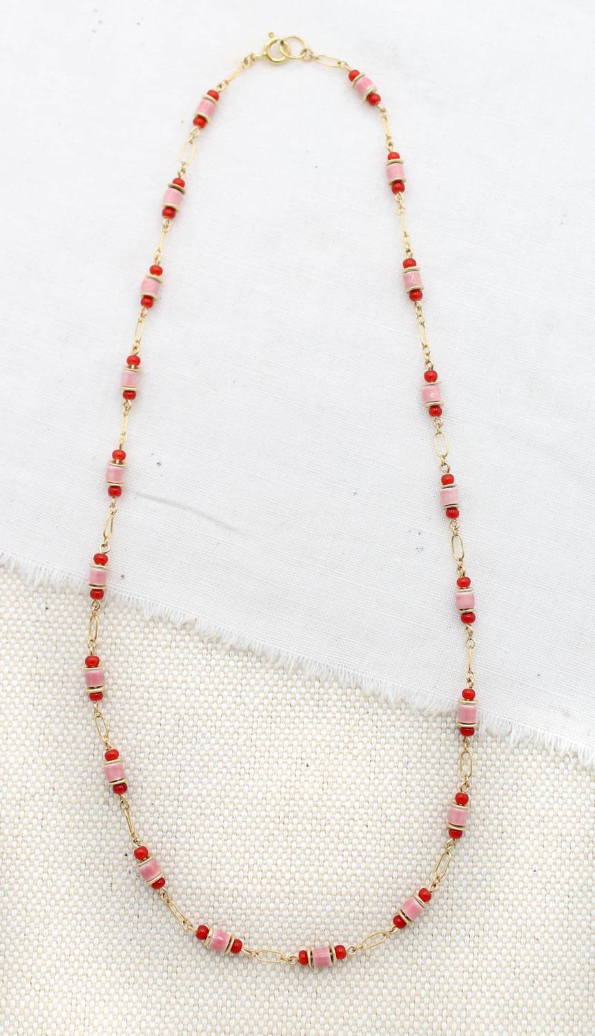Both understated and impactful, you'll be reaching for this one-of-a-kind necklace season after season. Discover the Komodo Chain Necklace by Swellife, a stunning fashion piece that adds a playful touch to any ensemble. This multi-colored necklace features a 14k gold-filled chain with porcelain pink and glass seed beads, offering a beautiful blend of sophistication and whimsy. Material: Gold Plating. Length: 16". Closure: Lobster clasp. Perfect for any occasion, this piece is designed to stand out.