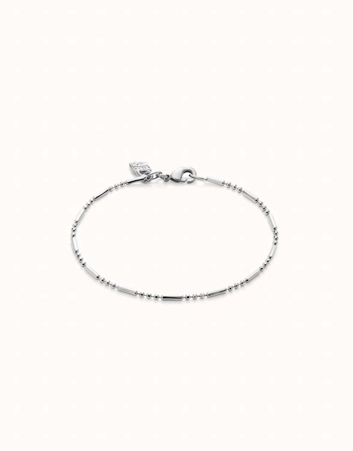 This bracelet will be your favorite go-to piece of the season. Introducing the Hatze Uno Thin Bracelet by UNOde50, a sterling silver-plated masterpiece crafted entirely by hand in Spain. This fashion bracelet features a delicate design with beads and elongated elements, perfect for wearing alone or turning into a charm bracelet. Its medium size comfortably fits a 6.1" - 6.5" perimeter. This exquisite piece comes with a 1-year guarantee, ensuring lasting elegance and quality.