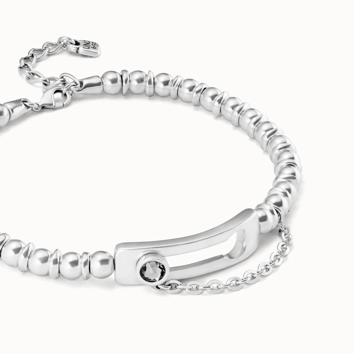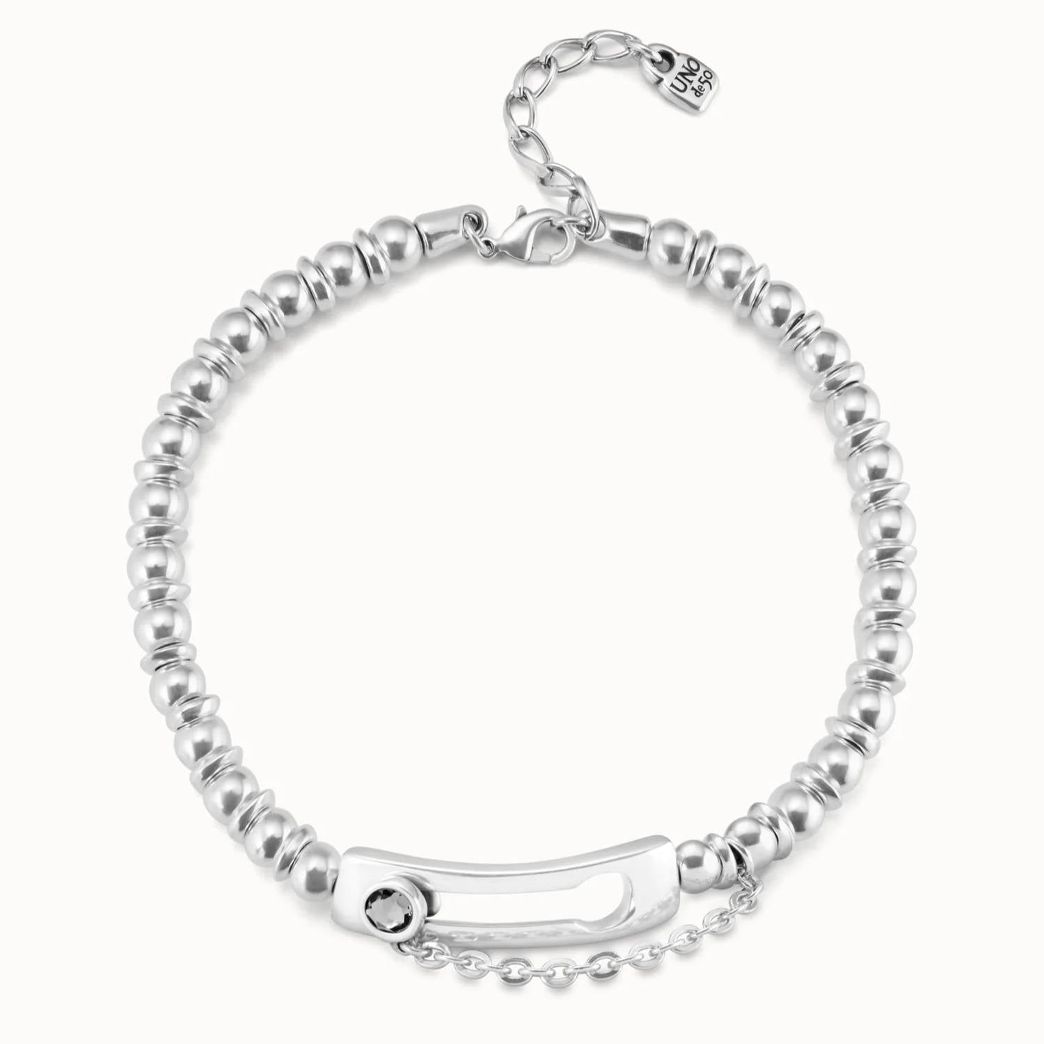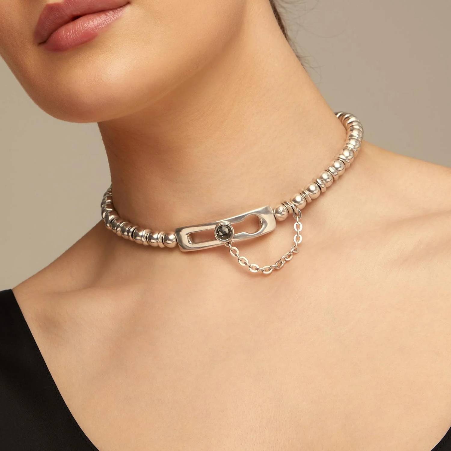 Both understated and impactful, you'll be reaching for this one-of-a-kind necklace season after season. Elevate your style with the On My Own Necklace by UNOde50, an exquisite fine jewelry piece that adds a touch of expressiveness to any outfit. The necklace features stunning metal beads adorned with crystal stones and is silver-plated for a polished finish. Composed entirely of metal, it boasts an adjustable length of 33cm with a 5cm extension chain for versatility. Originating from Spain, it features a secure carabiner clasp.
