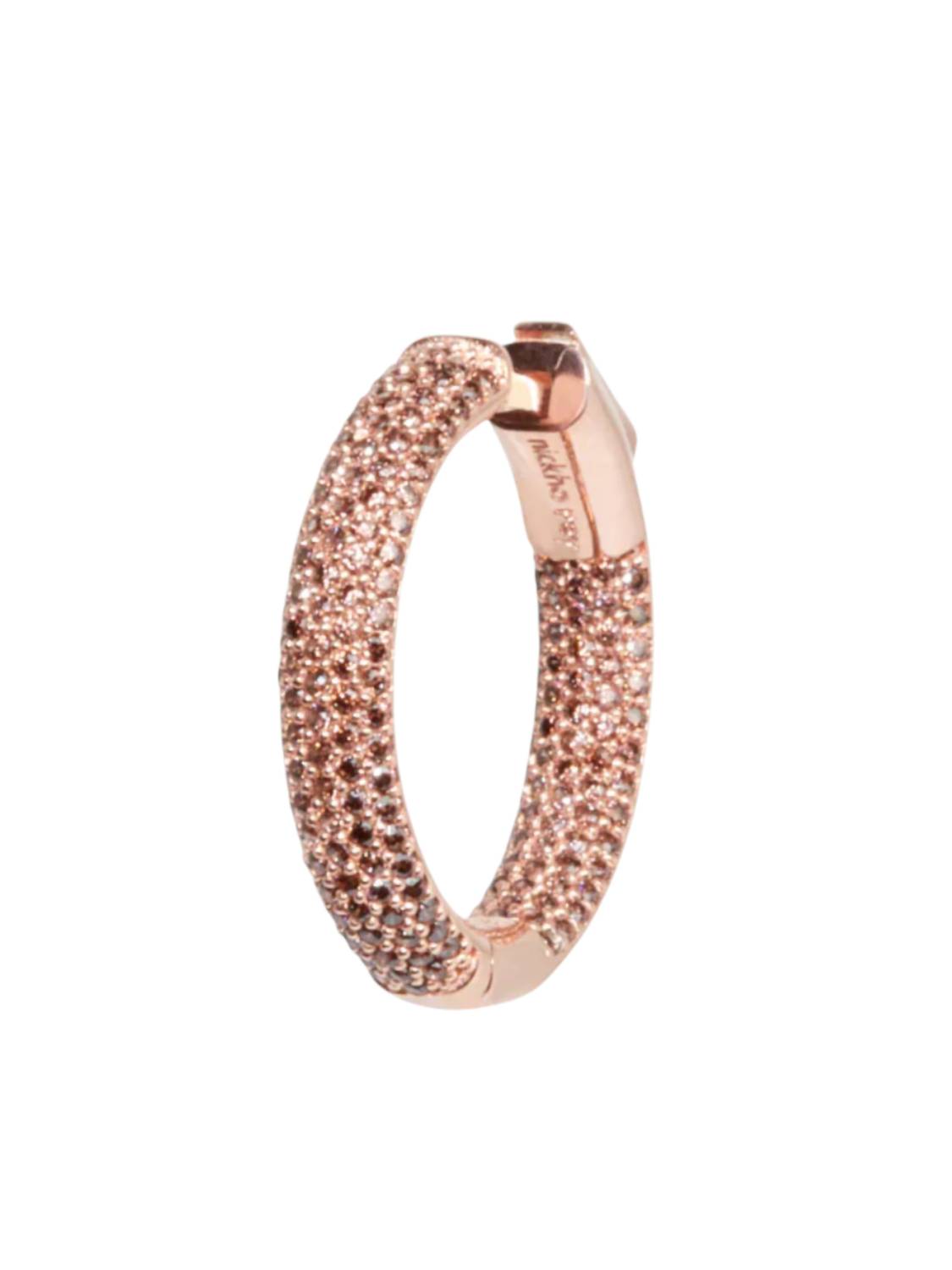 Classic earrings that will take you from season to season. Discover the Women's Mini Tire Hoop Earrings by Nickho Rey, a chic addition to your accessory collection. Crafted in 14k rose gold vermeil, these elegant hoops feature a versatile 19.05mm diameter. The earrings are adorned with dazzling coffee-colored crystals, offering a subtle yet striking shimmer for any occasion. Perfect for transitioning from day to night, they embody everyday luxury.
