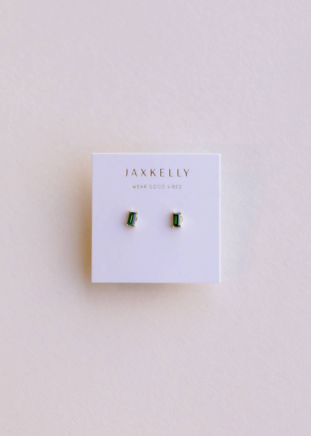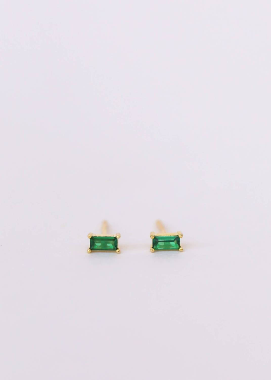 Easy and elegant earrings to complement any outfit. Enhance your ensemble with the Women's Baguette Stud Earrings by JaxKelly, featuring a stunning emerald-colored CZ stone. These earrings are crafted with sterling silver posts and exquisite 18K gold plating over brass, ensuring a fine jewelry experience. Designed to be hypoallergenic and lead-free, they are perfect for those with sensitive skin. The baguette shape measures 5mm x 2mm, and with a long-lasting, tarnish-free coating, these studs are designed to endure sweat, water, and everyday wear.