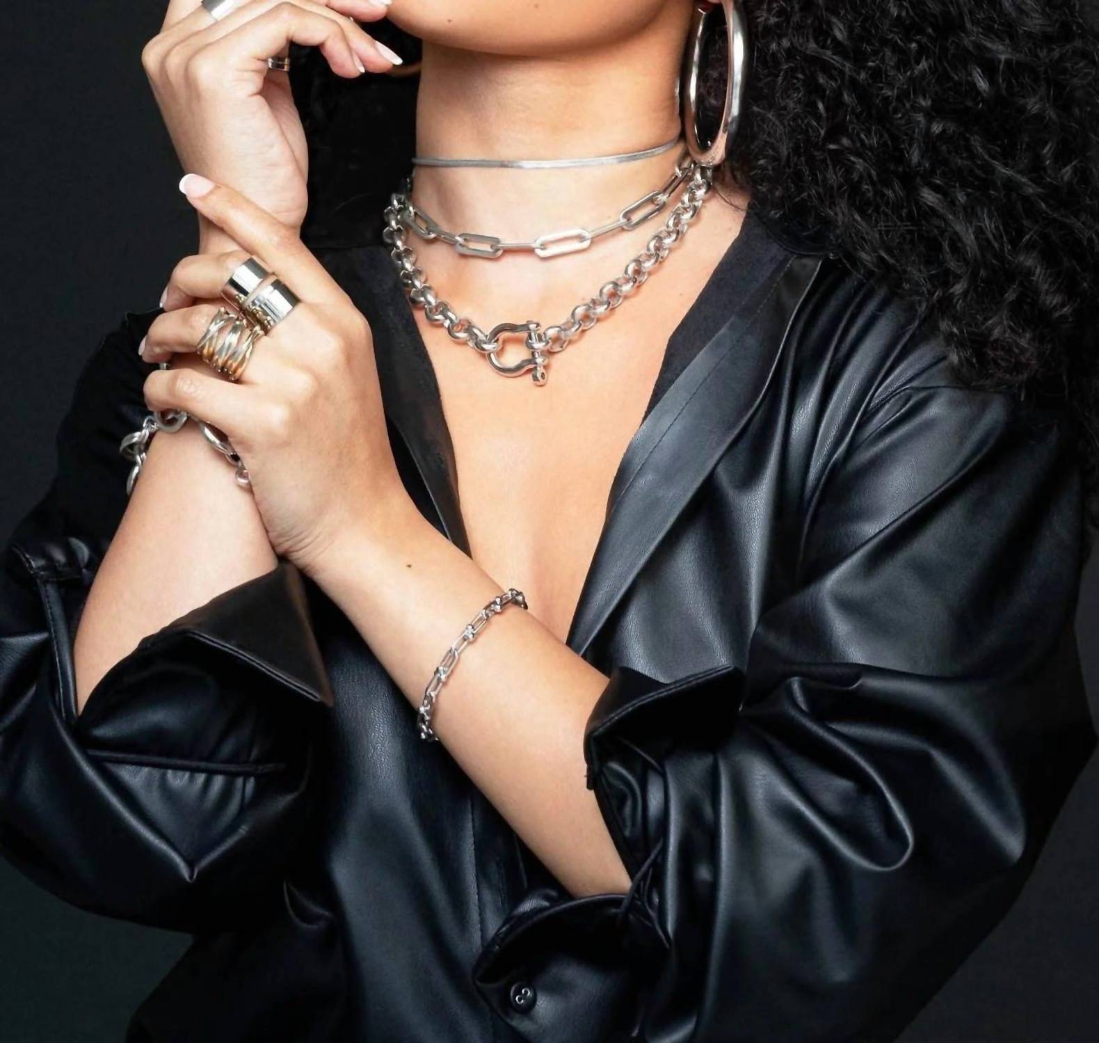 Both understated and impactful, you'll be reaching for this one-of-a-kind necklace season after season. Statement piece that embodies both elegance and sustainability. Crafted from recycled brass with durable gold plating. Features a chunky, 12mm rolo chain and a distinctive horseshoe clasp. Handcrafted design from US. Ensuring a perfect fit with its eye-catching dimensions: 25mm long clasp and each link being 12mm in diameter. Clear coating protects against wear and tarnishing, making it a stylish and enduring accessory.