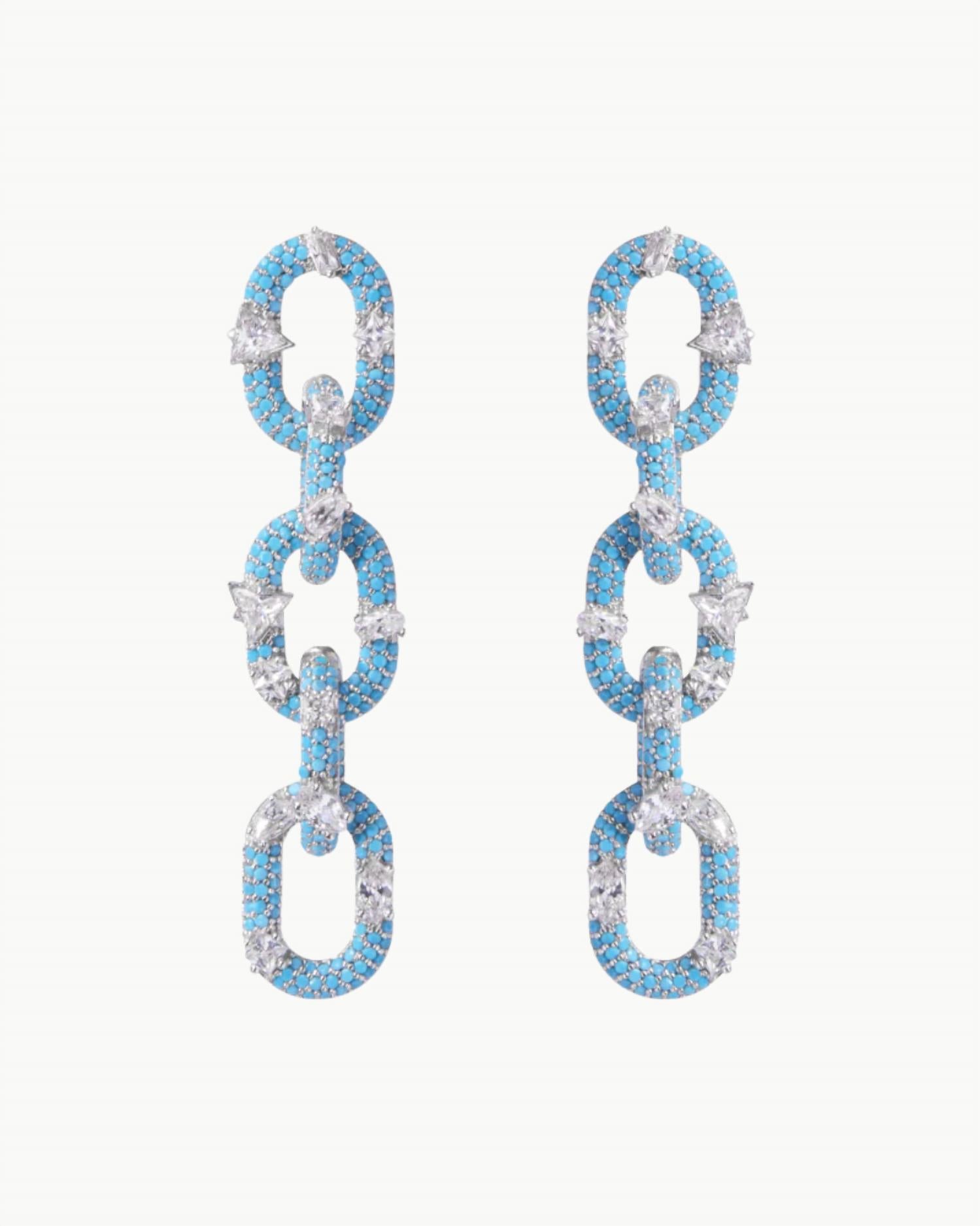 Classic earrings that will take you from season to season. Elevate your accessory collection with the Women's Spark Earrings by Nickho Rey, crafted to add an instant touch of glamour. These link earrings feature a unique design with white rhodium vermeil, combining turquoise and clear crystals for a vibrant sparkle. With a dramatic 64mm drop, they are perfect for making a bold, eye-catching statement. Material: Sapphire and crystal.