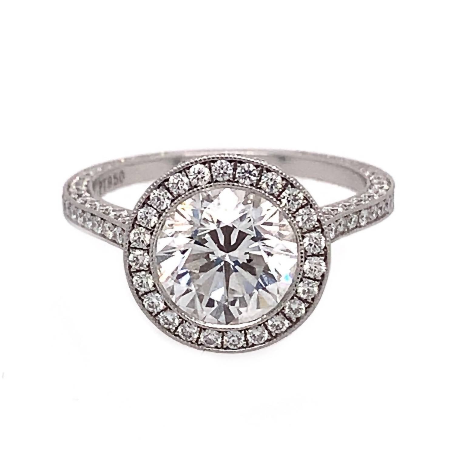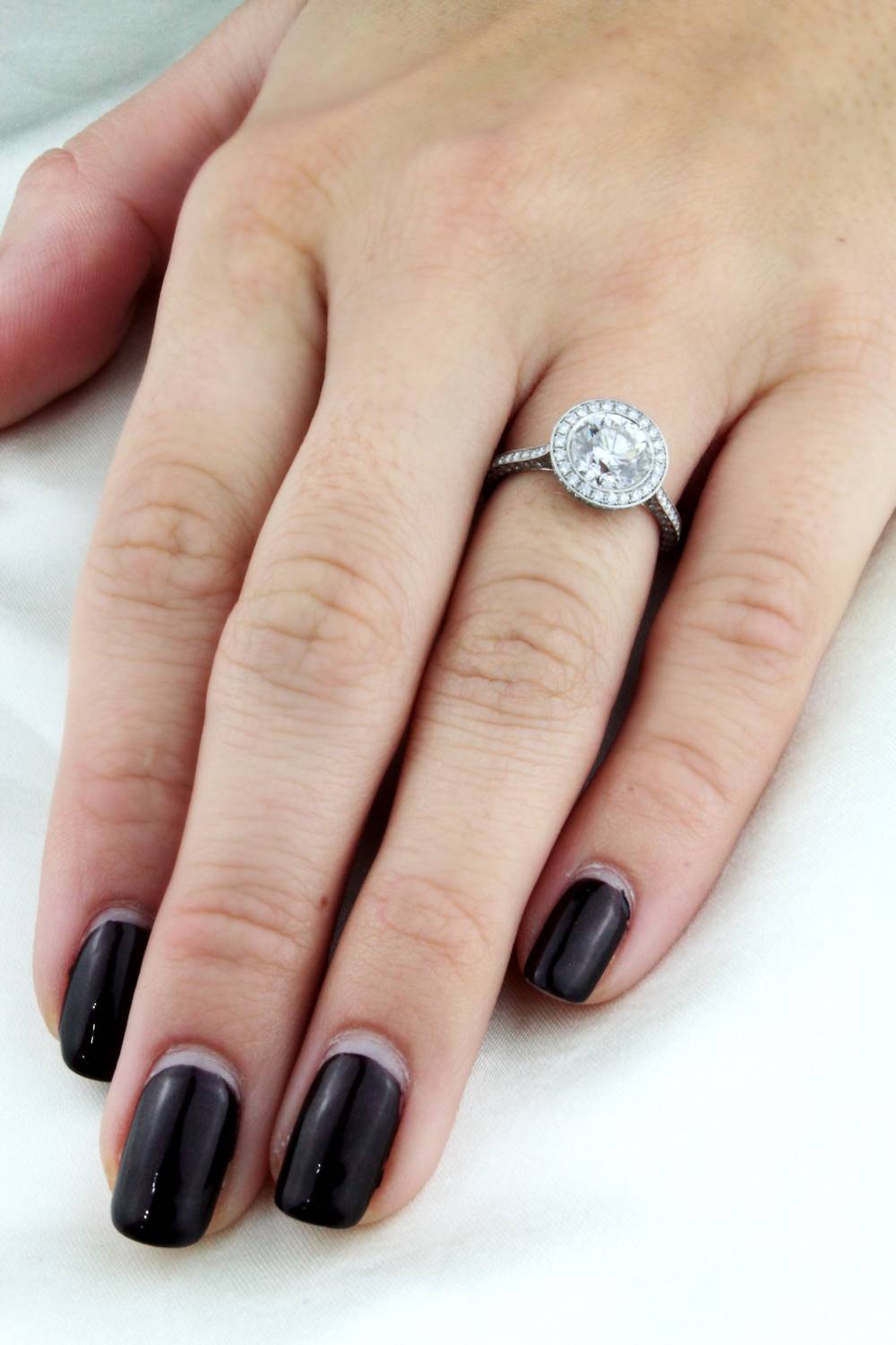 The wear-everywhere ring that you won't want to take off. Discover the elegance of the Women's Micro-pave Round Diamond Engagement Ring by Normani, meticulously crafted with a platinum setting for a dazzling finish. This exquisite ring features a hidden halo with micro-pave set round diamonds totaling 1 carat, framing a stunning 2 carat round center stone of E color and VS1 clarity. With its silver plating, this fashion piece is designed to capture the essence of sophistication. Tailored to fit, it adds a timeless sparkle for your most cherished moments.