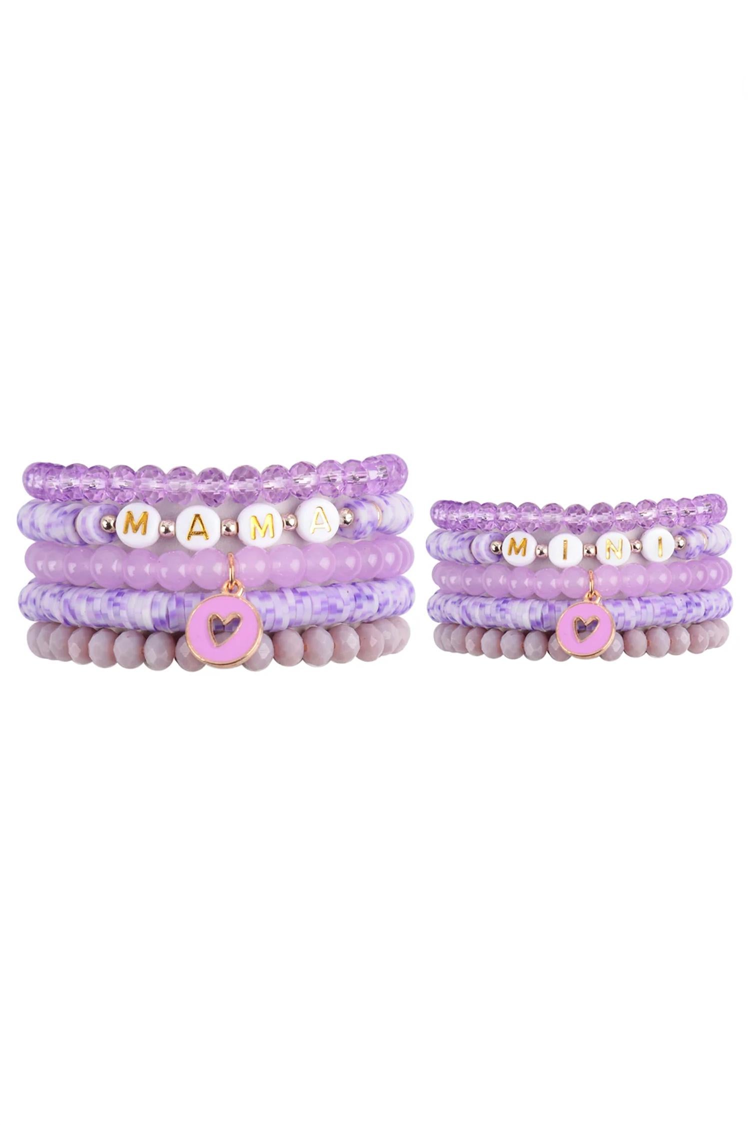 This bracelet will be your favorite go-to piece of the season. Embrace the special mother-child connection with the Mama & Me Fimo Glass Beads Bracelet Set by Riah Fashion. These stackable stretch bracelets are adorned with vibrant FIMO glass beads, crafted from glass stone and plastic materials, designed for everyday wear. With diameters of 2.5 inches for the mini and 3 inches for the mama, they symbolize an unbreakable bond. Ideal as a thoughtful gift for new moms, these purple bracelets are a stylish way to celebrate your unique relationship.