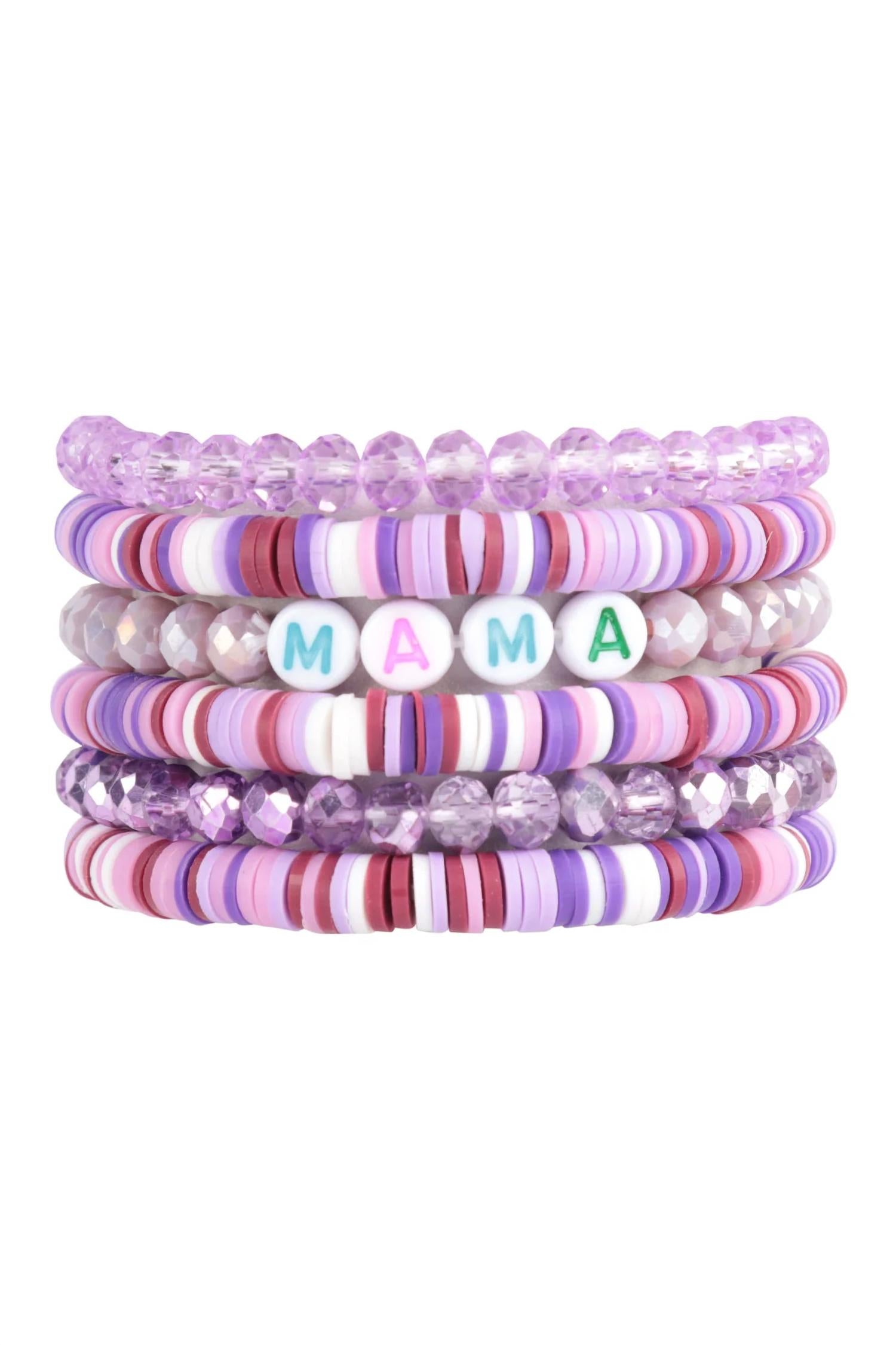 Riah Fashion - Mama & Me Fimo Glass Beads Stackable 5 Lines Bracelet Set