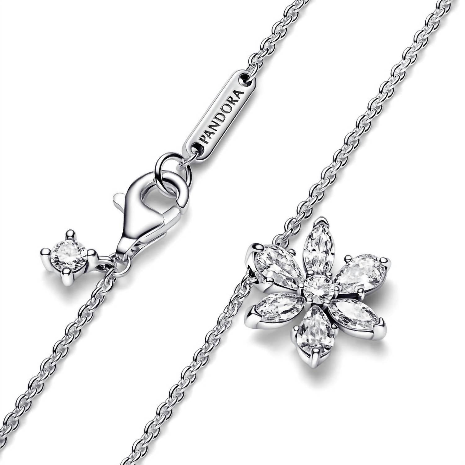 The perfect stand-out necklace that complements even the most basic t-shirt. Discover the Women's Herbarium Cluster Silver Collier Necklace by Pandora, a refined accessory to elevate any look. This fine necklace boasts sterling silver and dazzling clear cubic zirconia with a knife-edge setting. With a 45 cm length, it features a secure lobster clasp. Designed in sleek silver, it is perfect for both daily wear and special occasions.