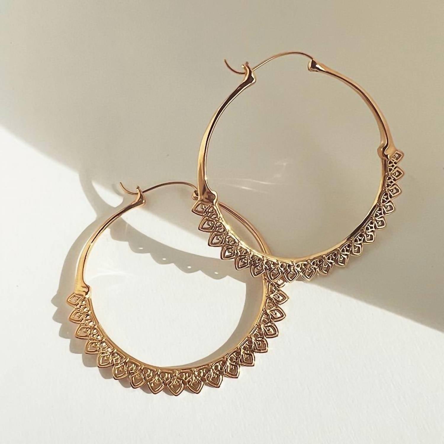 Easy and elegant earrings to complement any outfit. Enhance your ensemble with the Women's Corazon Hoop Earrings by Astor & Orion, skillfully designed for fashion-forward individuals. These gold statement hoops are 18k gold-plated and crafted from 70% recycled stainless steel, measuring 2.5 inches in diameter. Equipped with a hinged clasp, they promise both style and ease of wear. Ethically made, these earrings reflect a commitment to sustainability and conscientious craftsmanship.