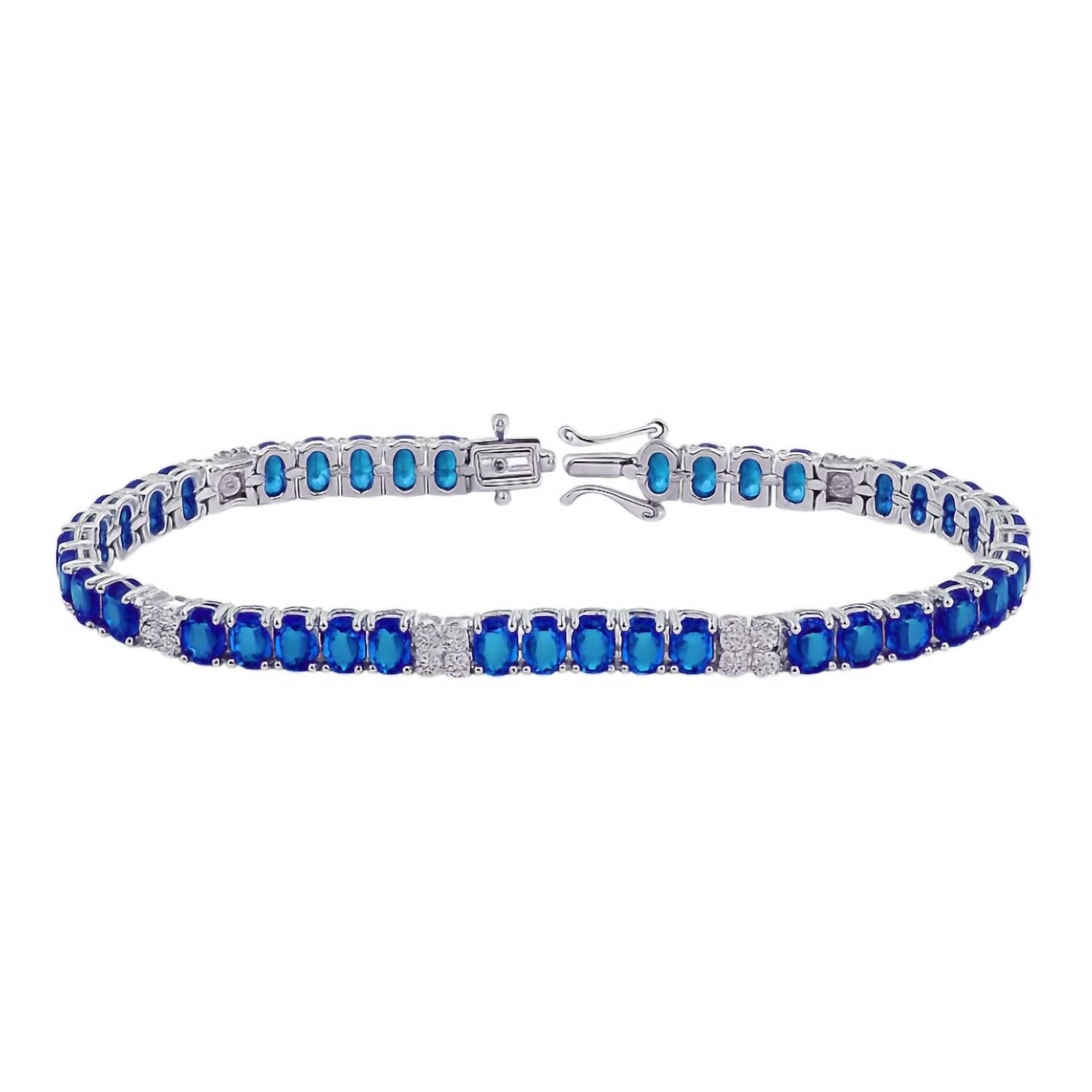 This bracelet will be your favorite go-to piece of the season. Enhance your wrist with the Oval Colored Tennis Bracelet by Atlanta Jewelers Supply. This fine piece features radiant blue cubic zirconia that adds a vibrant sparkle to any outfit. It measures 7.25 inches in length and has a 6mm thickness for a substantial feel. The bracelet's secure box clasp ensures it stays on comfortably throughout the day.