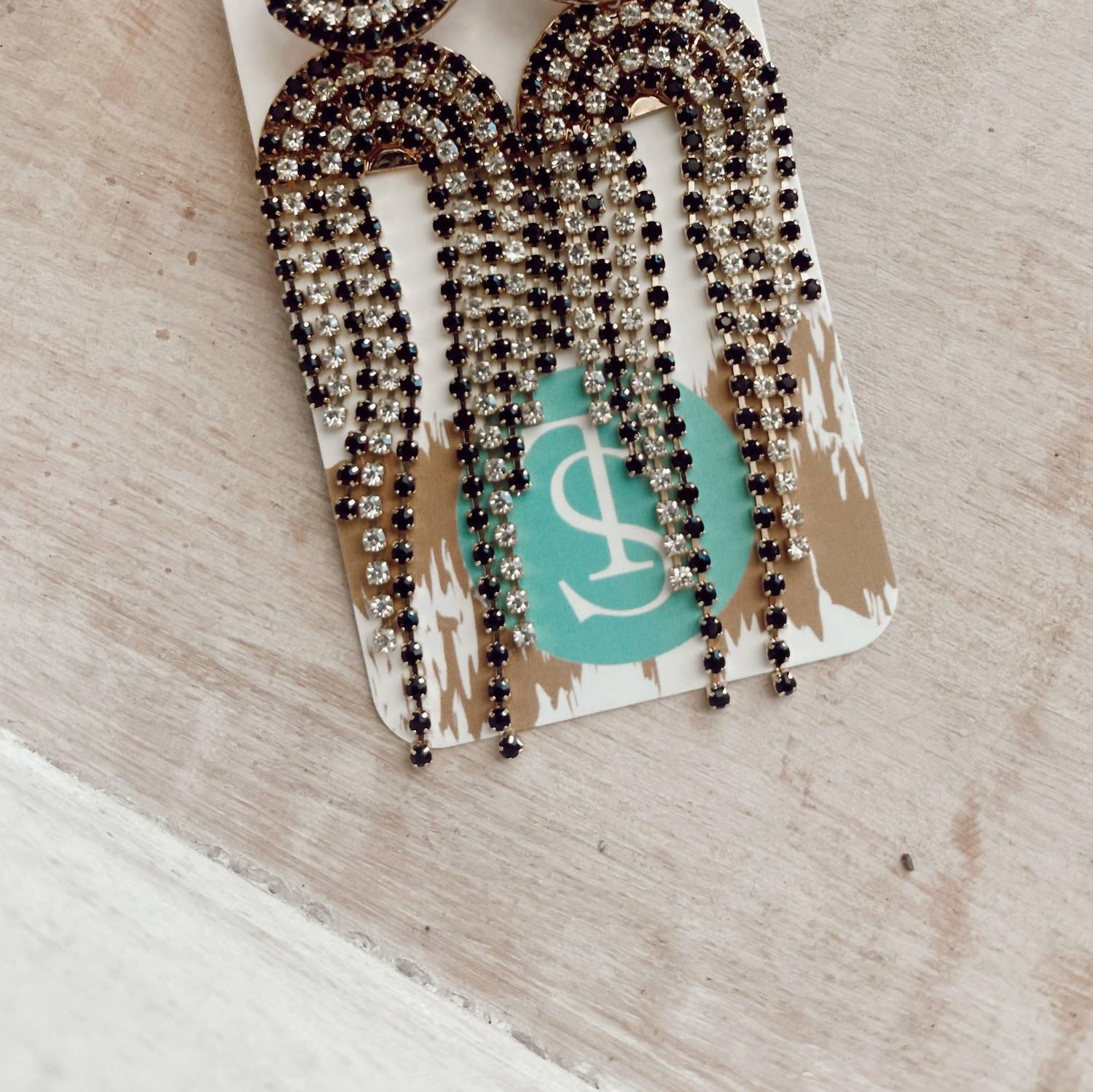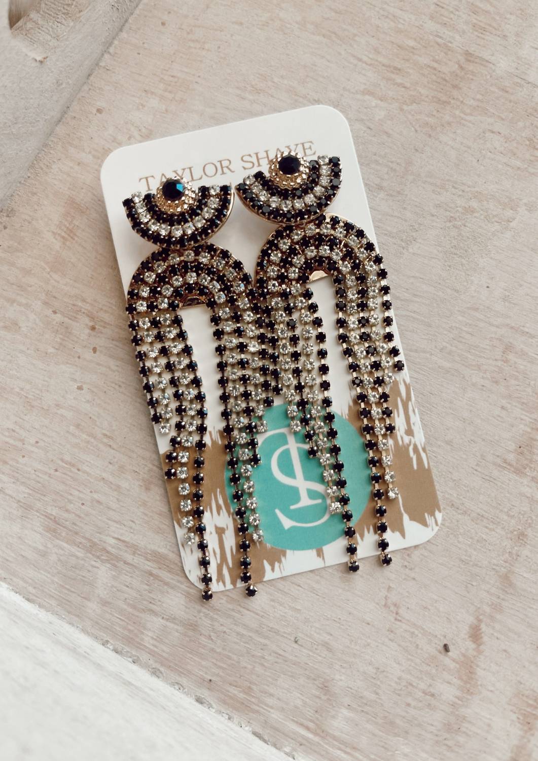 eye-catching earrings for every occasion. Enhance your ensemble with the Women's Stud Chain Drop Earrings by Taylor Shaye, featuring a striking combination of black, gold, and clear stones. These earrings effortlessly elevate any look, making them a perfect companion for your little black dress. Crafted from exquisite Cubic Zirconia and diamond materials, they reflect elegance and sophistication. Perfect for fashion-forward individuals, these earrings are an essential addition to your collection.