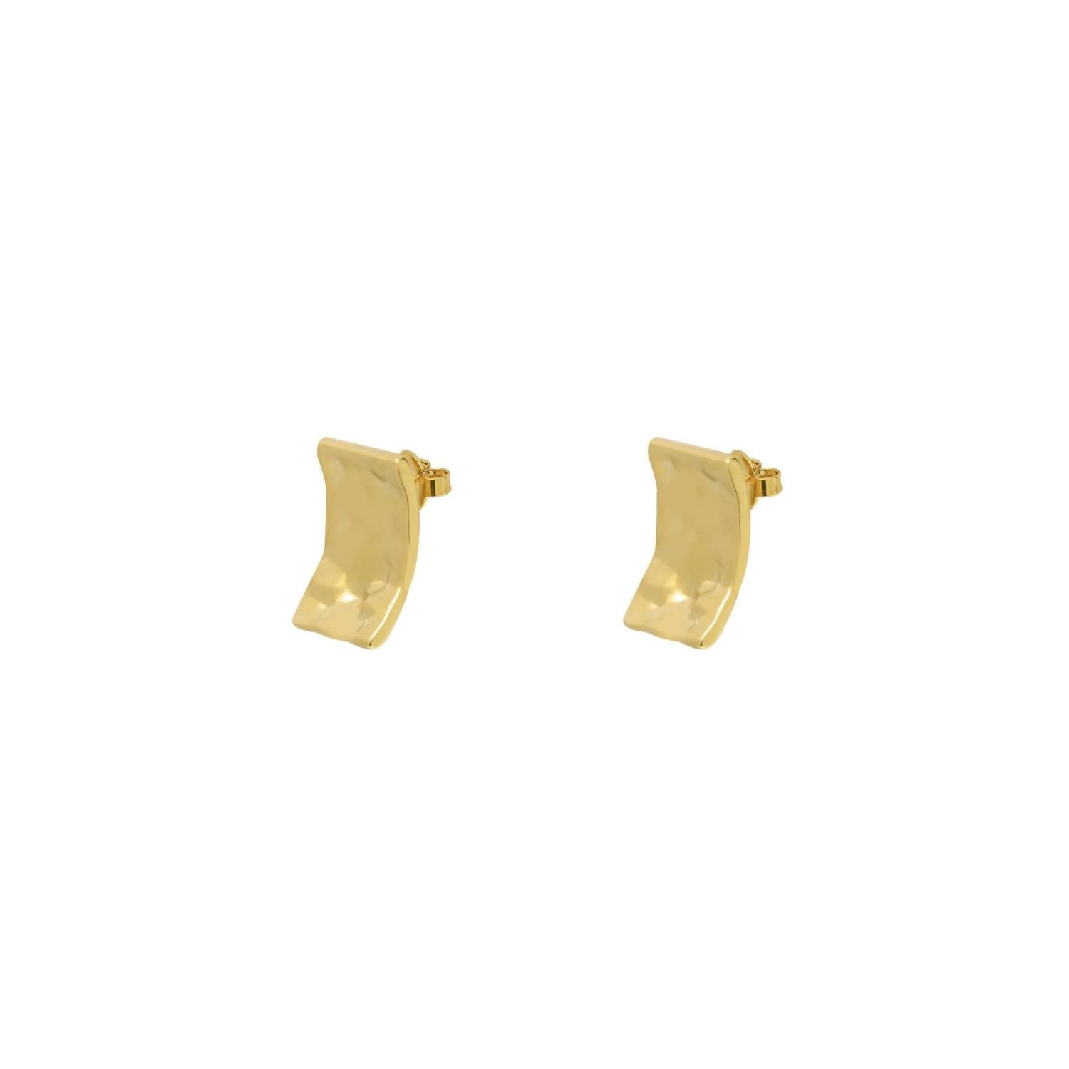 eye-catching earrings for every occasion. Introducing the Lisa Earrings by Vidda, a striking pair crafted for elegant, everyday elegance. These fine curved rectangle stud earrings are made from a 24k gold plated metal alloy, each weighing 4 grams. They feature a traditional screw closure for secure wear. Care for the gold finish by using a soft non-polishing cloth and avoid exposure to water for lasting shine.