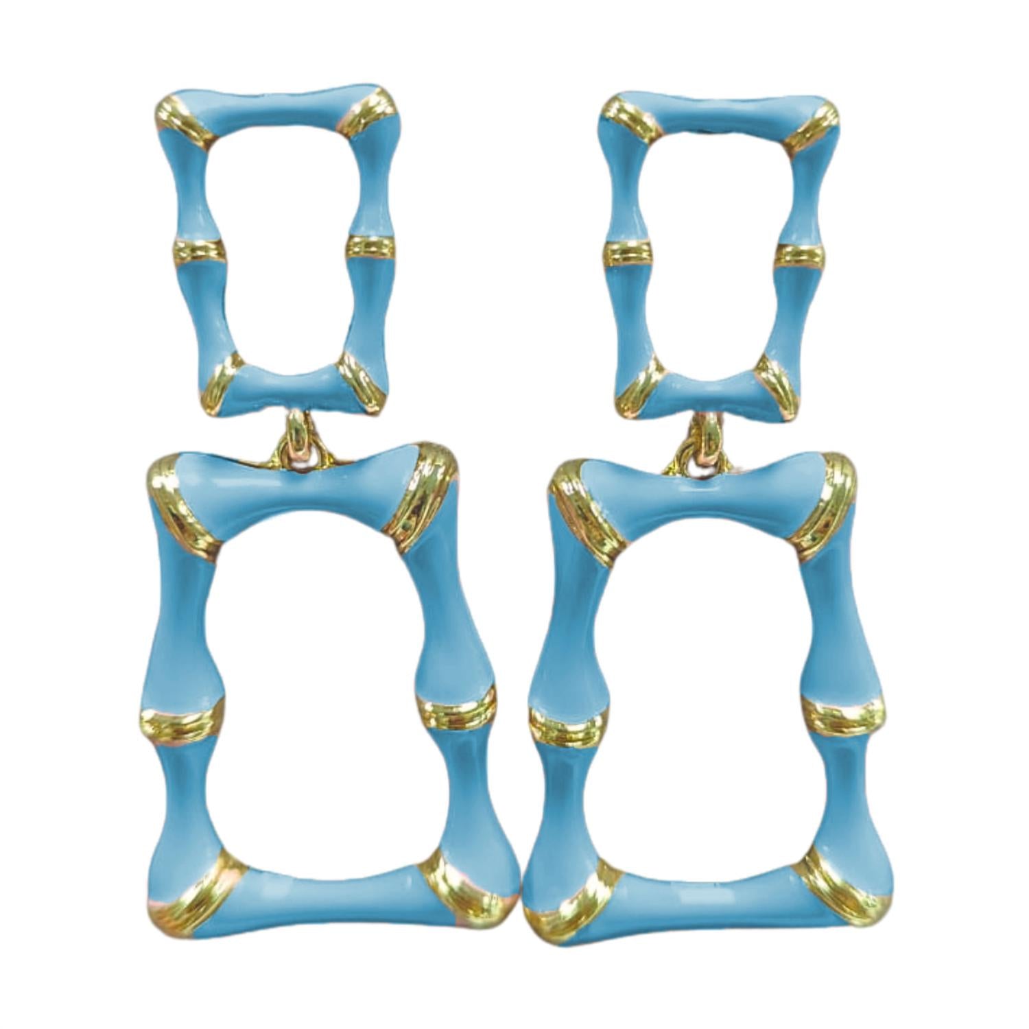 Easy and elegant earrings to complement any outfit. Elevate your accessory collection with the Women's Enamel Bamboo Earrings by Brianna Cannon, imbued with a chic powder blue hue. These fashion earrings, crafted from mixed metal, measure approximately 2" in length and boast a distinctive green enamel bamboo design. A hypoallergenic post ensures comfort, while the back displays the signature BC logo. To maintain their pristine condition, avoid swimming, exercising, and applying hairspray or perfume while wearing these earrings, and clean gently with a soft cloth and water.