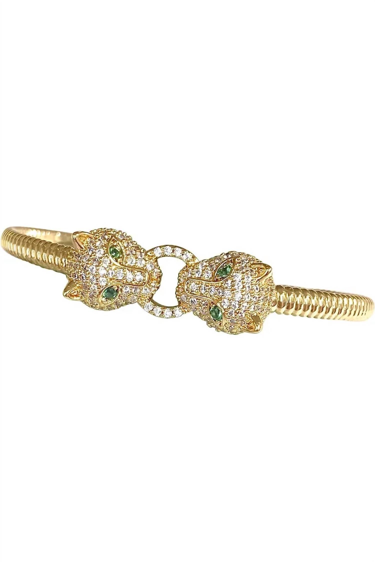This stand-out bracelet is good enough to wear on its own, or stacked with your favorites. Introducing the Women's Roar Bracelet by Gemelli, a striking piece that blends high-quality materials with a bold, animal-inspired design. Crafted in elegant gold with cubic zirconia accents, this bracelet is the perfect blend of style and personality. With its fashion-forward appeal, it's designed to add a playful touch to any outfit. Embrace your wild side with this standout accessory.
