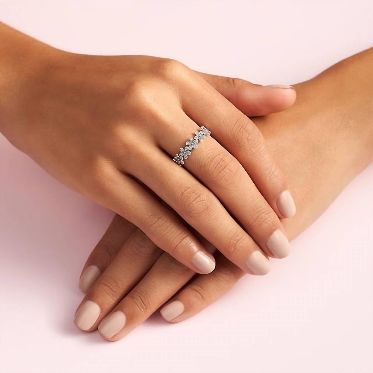The wear-everywhere ring that you won't want to take off. Discover the Women's Daisy Ring by Pandora, a beautiful piece crafted in stunning silver plating for a touch of elegance. This fashion ring features a charming daisy flower crown design, perfect for adding a delicate sparkle to any outfit. Originating from a renowned brand known for exquisite jewelry, this piece is certain to become a cherished accessory in any collection.