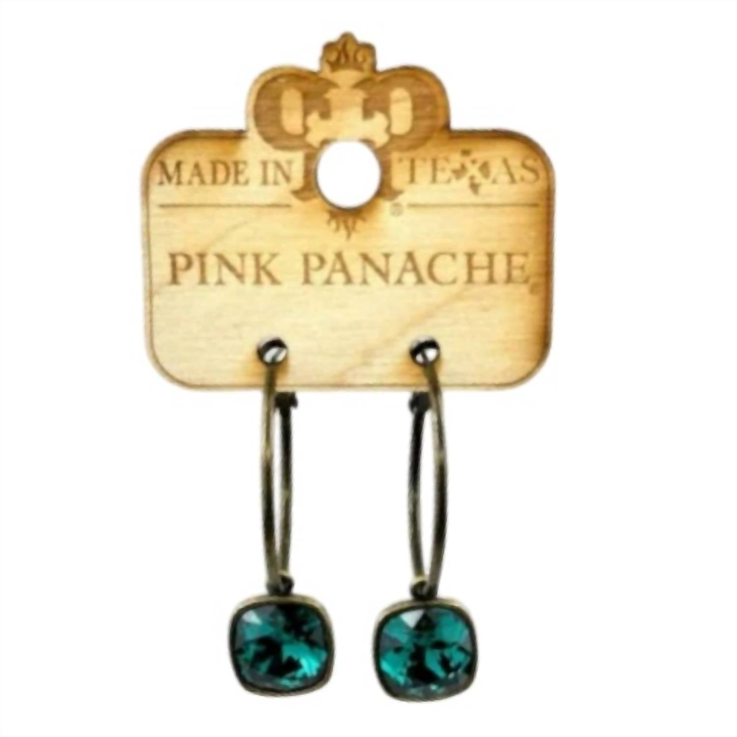 Classic earrings that will take you from season to season. Elevate your ensemble with the Women's Hoop Earrings With Crystal by Pink Panache, boasting a dazzling 12mm Austrian crystal in emerald green. These medium-sized hoops are crafted from brass, enhanced with a custom bronze-plated bezel, and feature a hinged flip-latch closure for secure wear. Measuring 2 inches in length, they are designed and crafted in Texas, adding a stunning pop of color to any outfit. Perfectly versatile, these earrings complement everything from casual denim to sophisticated evening attire.