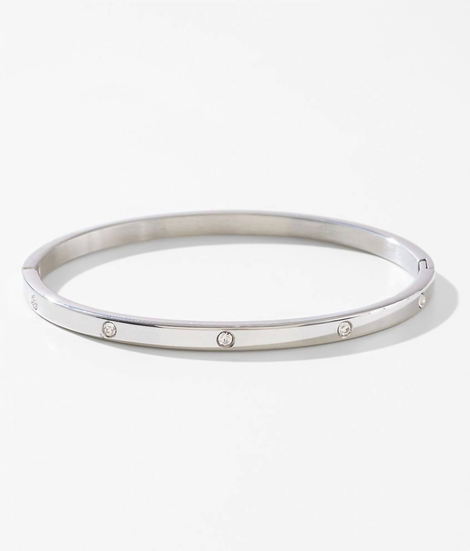 This bracelet will be your favorite go-to piece of the season. Elevate your accessory game with the Women's Elsie Eternity Bracelet by SAHIRA, a stylish addition to any collection. Crafted from 18k white gold plated stainless steel or silver, this bracelet is both hypoallergenic and tarnish-resistant, ensuring lasting wear. Featuring round brilliant cubic zirconia set in a bezel type setting, it shines with sophistication. Choose to stack multiple colors or wear it solo for a classic look in timeless white gold.