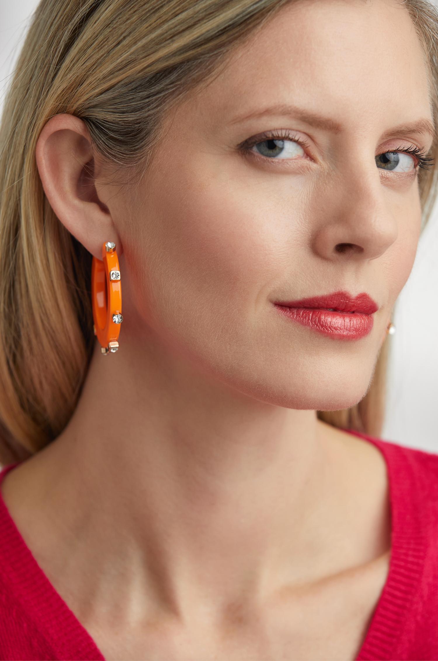 eye-catching earrings for every occasion. Elevate your look with the Women's Large City Girl Jewel Hoop Earrings by SMITH & CO, a must-have in chic French Blue. These lightweight earrings feature a thick acrylic hoop design with acrylic rhinestones for a stunning three-dimensional appearance. Engineered with a steel post, they offer easy wearability and comfort throughout the day. Crafted from eco-friendly, lead-free, and nickel-free materials, they are also resistant to corrosion, making them a stylish and sustainable accessory choice. Made from durable stainless steel.