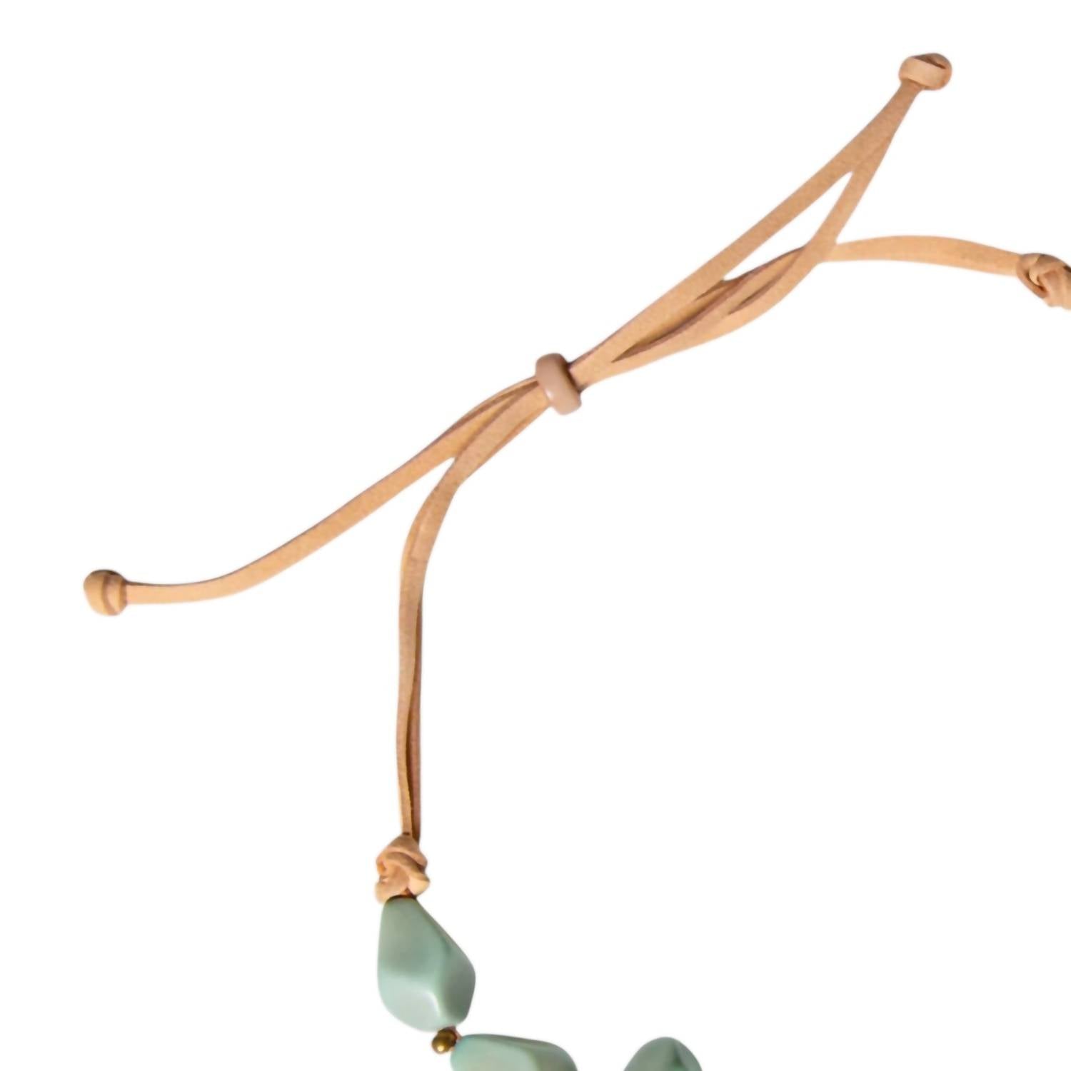 Both understated and impactful, you'll be reaching for this one-of-a-kind necklace season after season. Embrace the vibrant charm of the Women's Fabiola Necklace by Tagua Jewelry, a perfect example of fashionable elegance. This piece is crafted from sustainable Tagua nut and brass beads, infused with organic vegetable dyes for its striking celeste color. Featuring a faux leather cord, the necklace is adjustable from 18" to 33", allowing for versatile styling. Each necklace is uniquely handmade in Ecuador, ensuring an accessory that pairs natural beauty with artisanal craftsmanship.