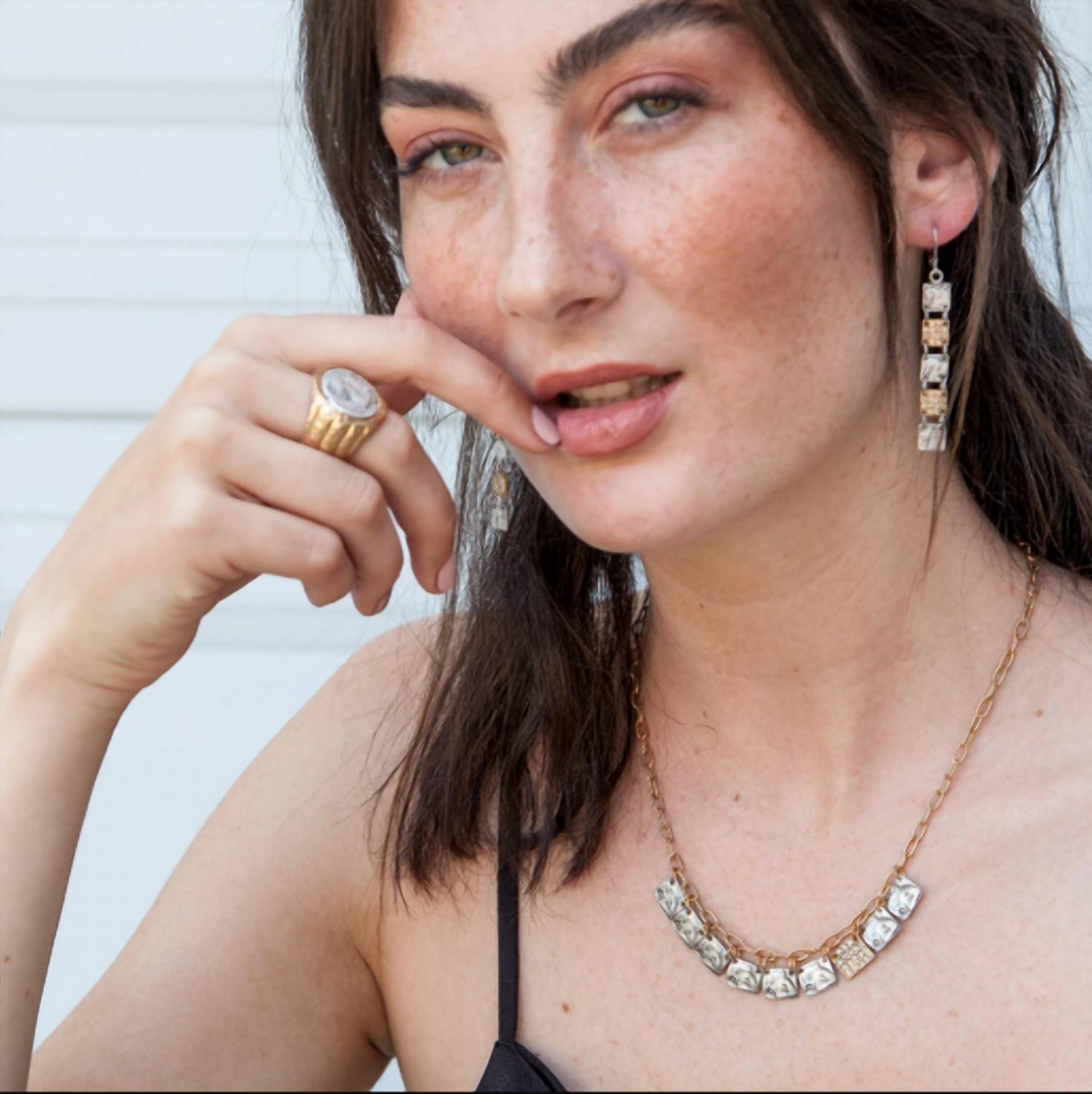 Both understated and impactful, you'll be reaching for this one-of-a-kind necklace season after season. 24k gold and sterling silver plated. Ancient coin from Rome. Pavé crystal accent square. 16"-18" chain length. Lobster clasp