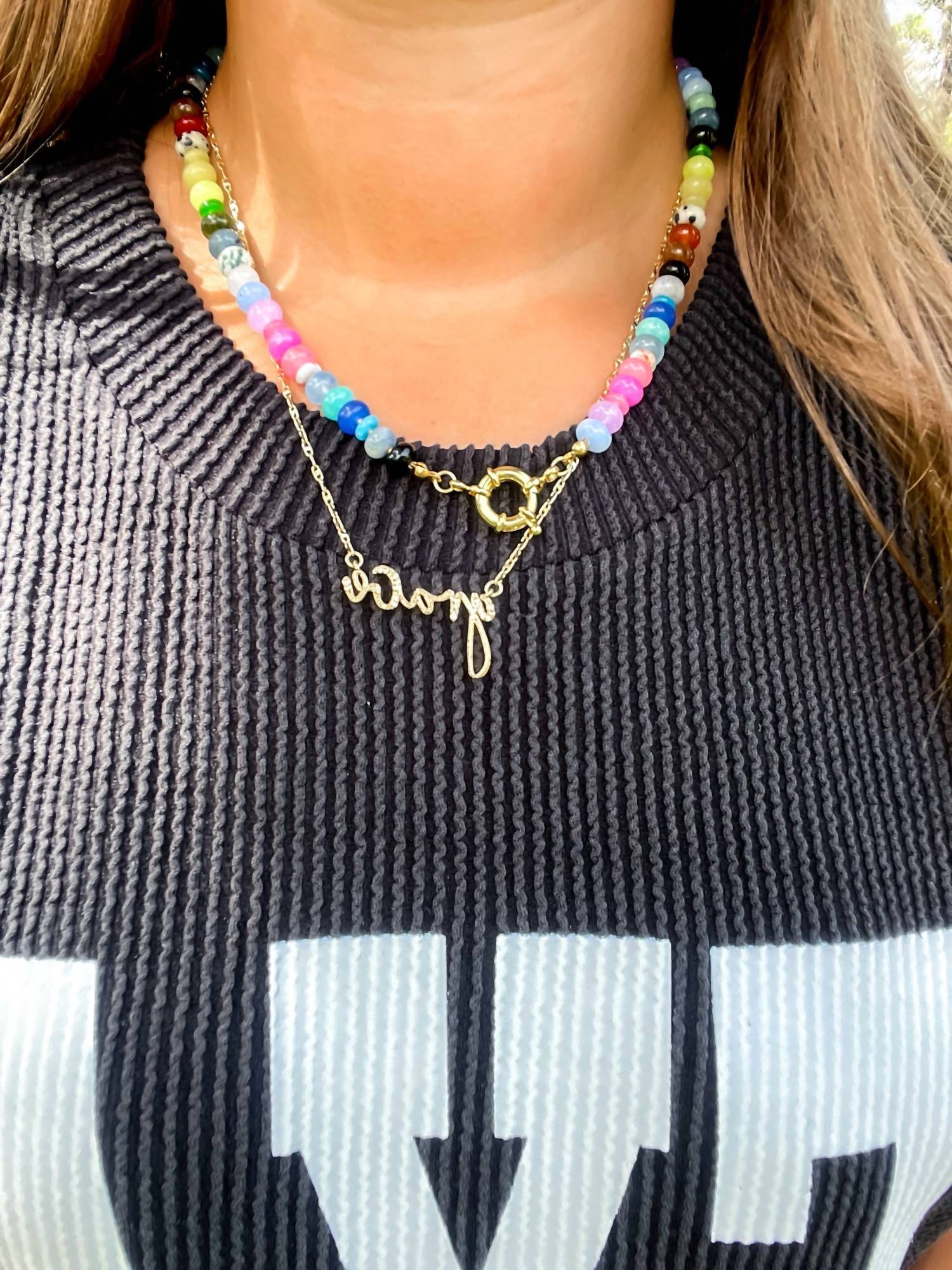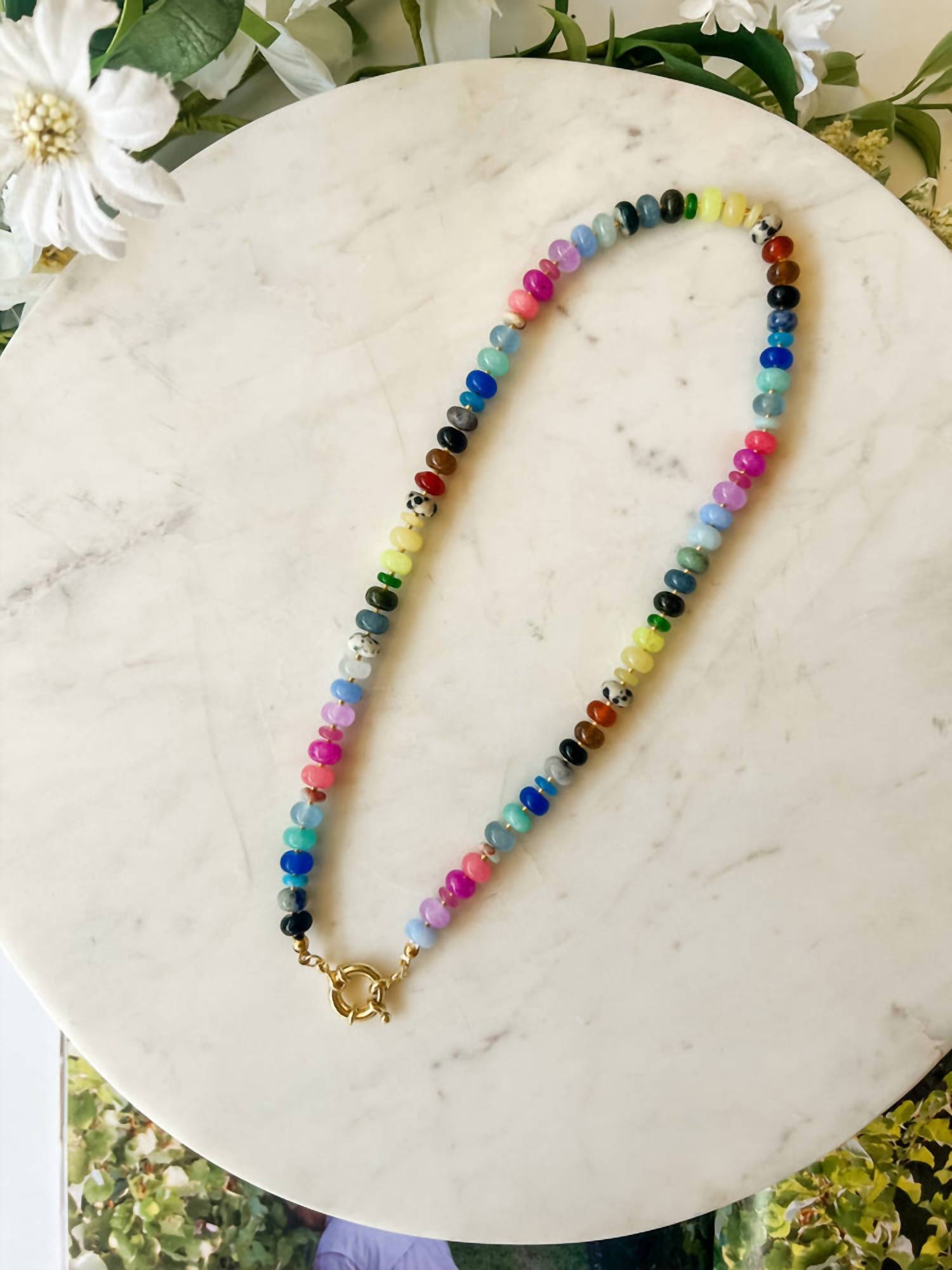 Layer this necklace or wear it on its own. Either way it's a win-win. Introducing the Women's Rainbow Necklace by Treasure Jewels, a chic fashion accessory that effortlessly enhances any outfit. Featuring dainty, chunky, and solid multi-color styles, this necklace is crafted with a luxurious gold plating. Its vibrant color palette, known as Rainbow Magic, is perfect for injecting a pop of excitement into your look. Embrace a statement piece that's all the rage and designed to elevate your jewelry collection.
