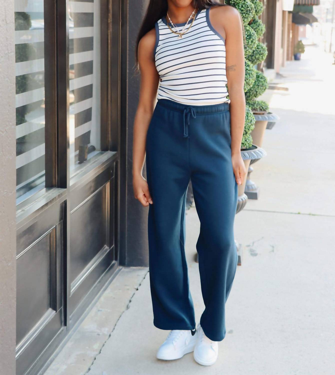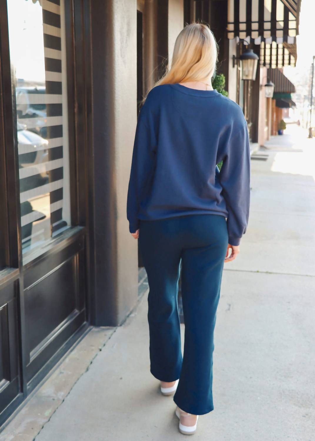 No gym necessary for these cool-girl joggers. Introducing the Hype Sweatpants by Z Supply, the epitome of cozy elegance in Eclipse Blue. These women's track pants are crafted from 100% Cotton Tuft Fleece, providing a heavyweight yet comforting feel ideal for chilly days. Designed with a high rise and ankle length, these sweatpants feature a relaxed fit with side seam pockets and an elastic waistband for convenience. With a pull-on closure, they’re perfect for athleisure or holiday parties, and the care instructions ensure ease: machine wash cold on a gentle cycle and hang to dry. Hannah wears a size medium; she’s 5’9” and usually dons a small/medium top and medium or 28/29 in bottoms.