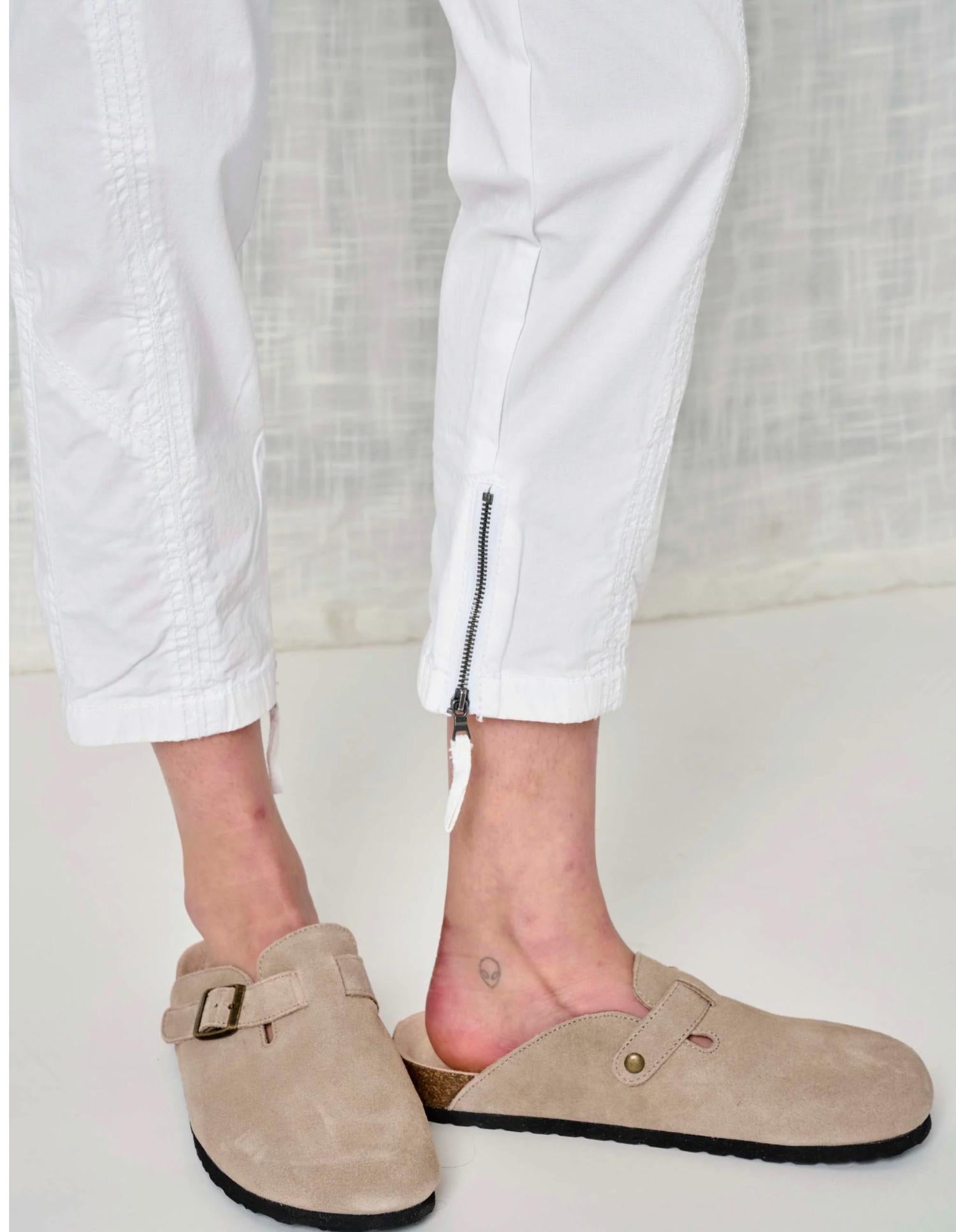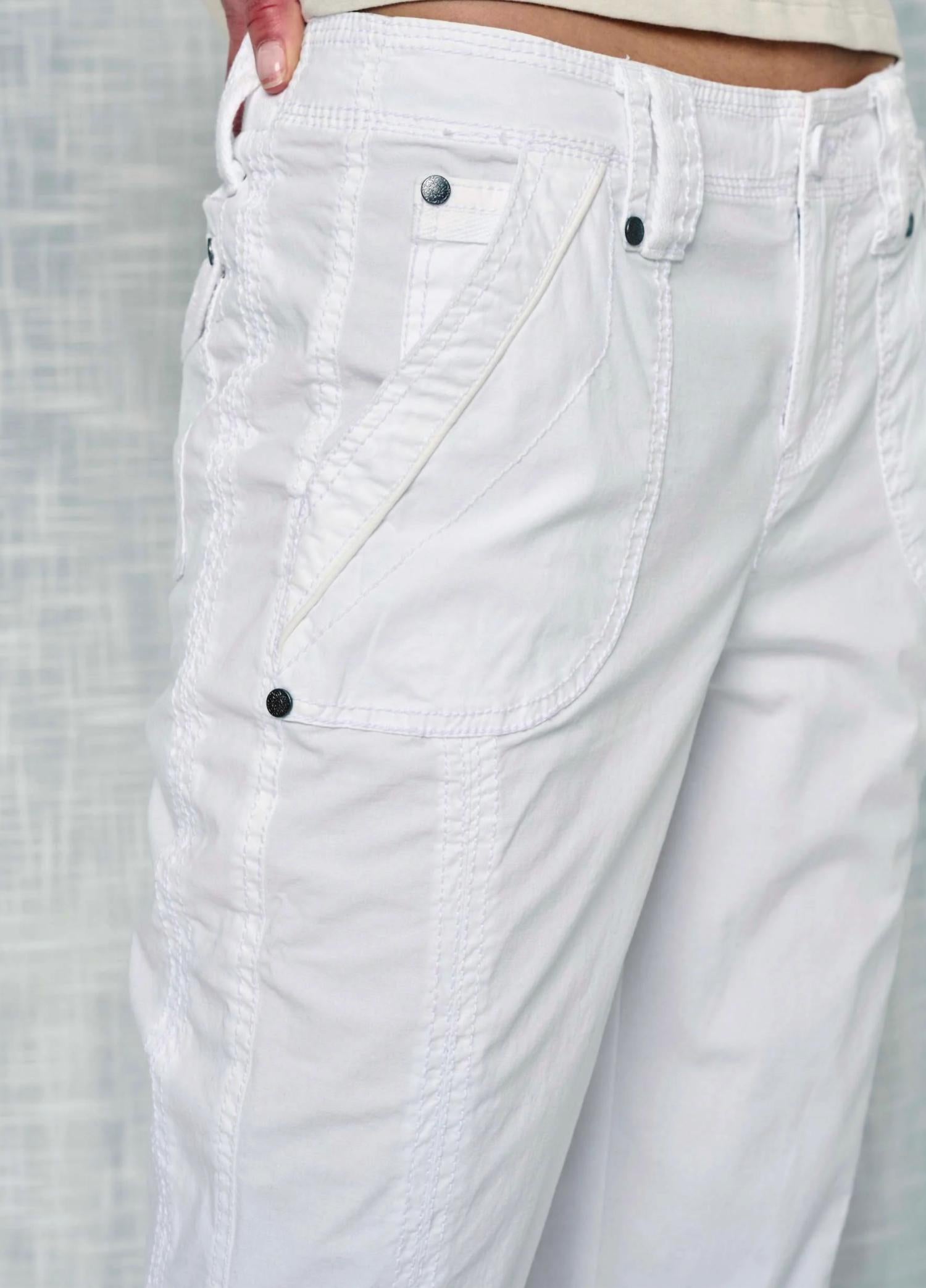 No gym necessary for these cool-girl joggers. Introducing the Johnny Solid Poplin Jogger by Marrakech, a chic addition to any wardrobe with its sleek white hue. Crafted from a durable cotton blend, these pants offer a comfortable fit thanks to the 97% cotton and 3% spandex shell, complemented by rib detailing of 95% cotton and 5% spandex. The joggers feature a button closure and practical pockets, all tailored with a tapered leg design and a mid-rise waist for effortless style. Care instructions include machine wash cold on a gentle cycle and tumble dry low for easy maintenance.
