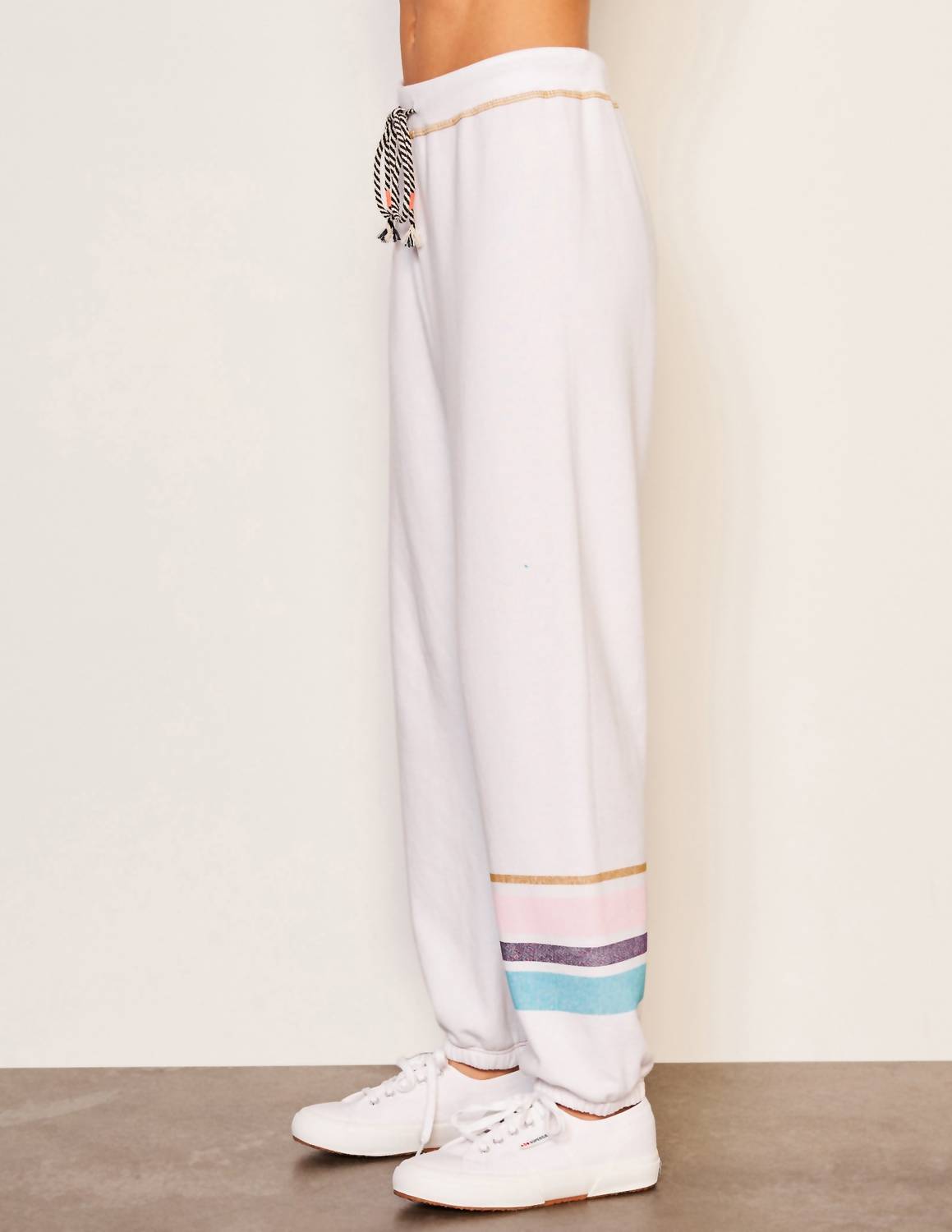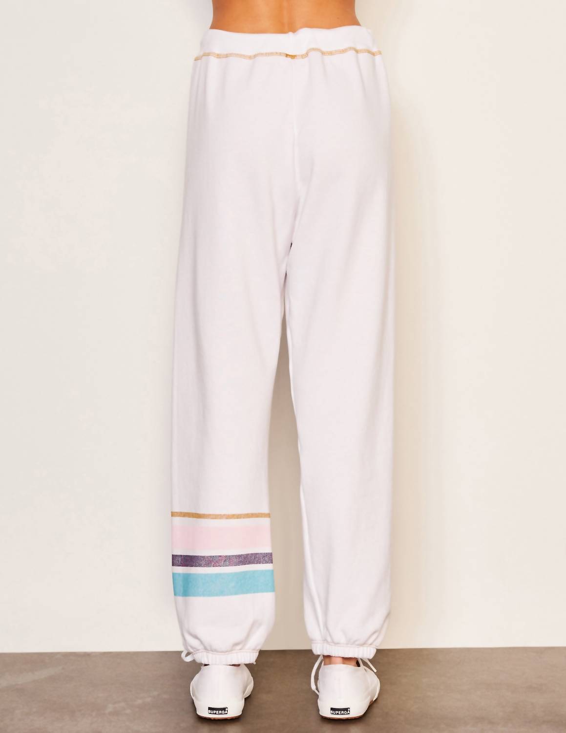 No gym necessary for these cool-girl joggers. Introducing the Sundry Striped Jogger Pants in Optic White, perfect for those seeking comfort and style. These women's joggers feature a cozy cotton blend of 50% Cotton and 50% Polyester, adorned with chic stripe details. With a comfort fit, pull-on closure, and convenient pockets, these straight-leg joggers offer a mid-rise waist ideal for summer sporting a minimalist trend. For care, machine wash cold and tumble dry at low heat for easy maintenance.