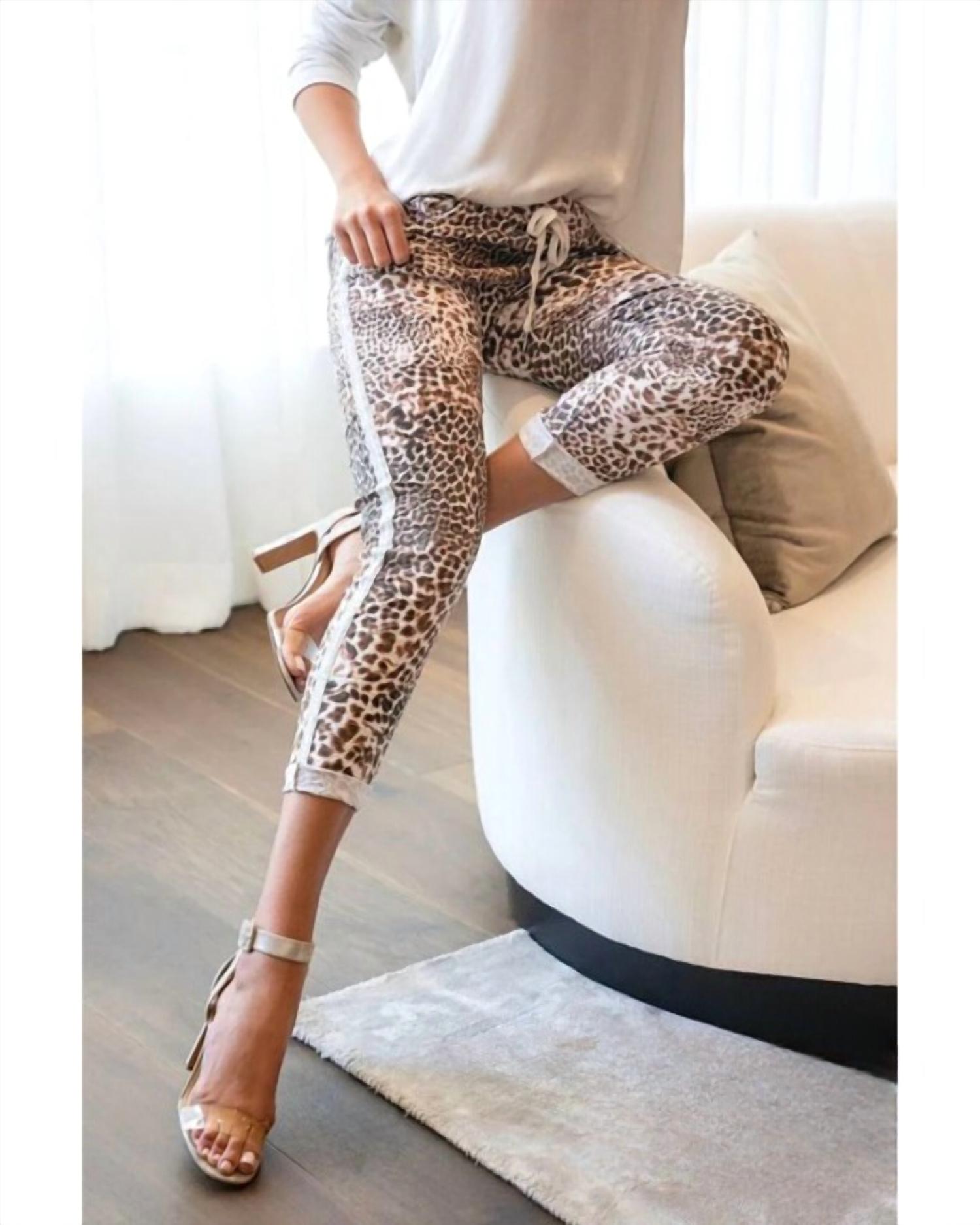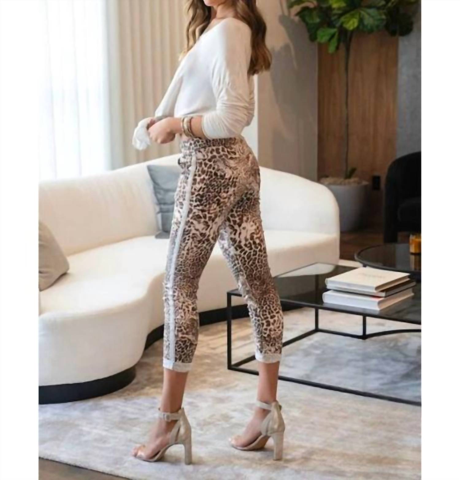 Venti6 - Martina Animal Print Side Silver Stripe Joggers