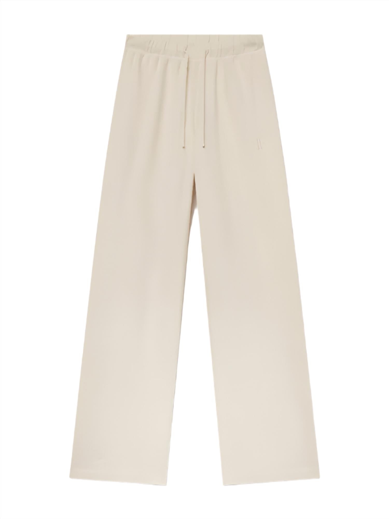 No gym necessary for these cool-girl joggers. Embrace comfort and style with ÉTERNE's Drawstring Wide Leg Sweatpant, perfect for travel and leisure. Crafted from 100% cotton in a solid bone hue, these joggers feature a mid-rise waist and relaxed fit for effortless wear. Designed and made in the USA, they boast a pull-on closure for convenience. With a versatile wide leg design, they're ideal for spring adventures.