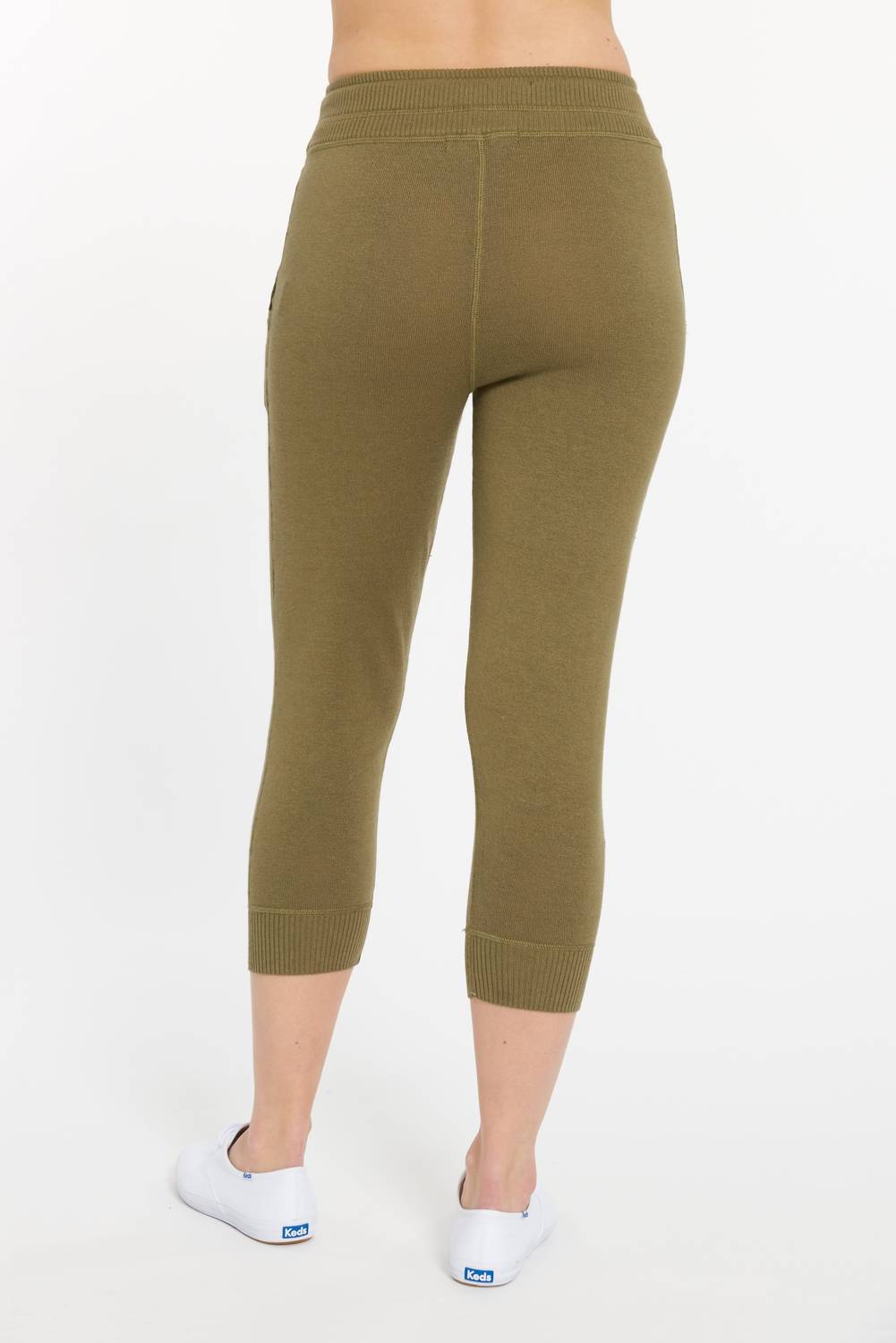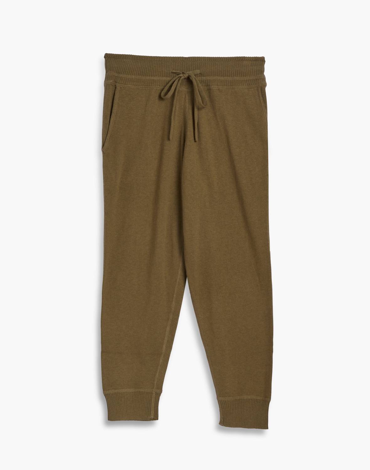 No gym necessary for these cool-girl joggers. Elevate your loungewear collection with the Women's Sagaponack Jogger by LEIMERE, perfect for comfort on off-duty days in a chic olive shade. Featuring a pull-on closure and equipped with front pockets, these joggers offer convenience and style with their ultra-soft composition of 50% Modal, 25% Cotton, 15% Nylon, and 10% Cashmere. Made with a focus on quality, these imported joggers are finished with cover stitch seams. Care instructions suggest hand washing and laying flat to dry, with an option for a gentle machine wash with like colors. Model wears size Small (27" Waist / 21" Inseam / 10" Front Rise / 13.5" Back Rise).