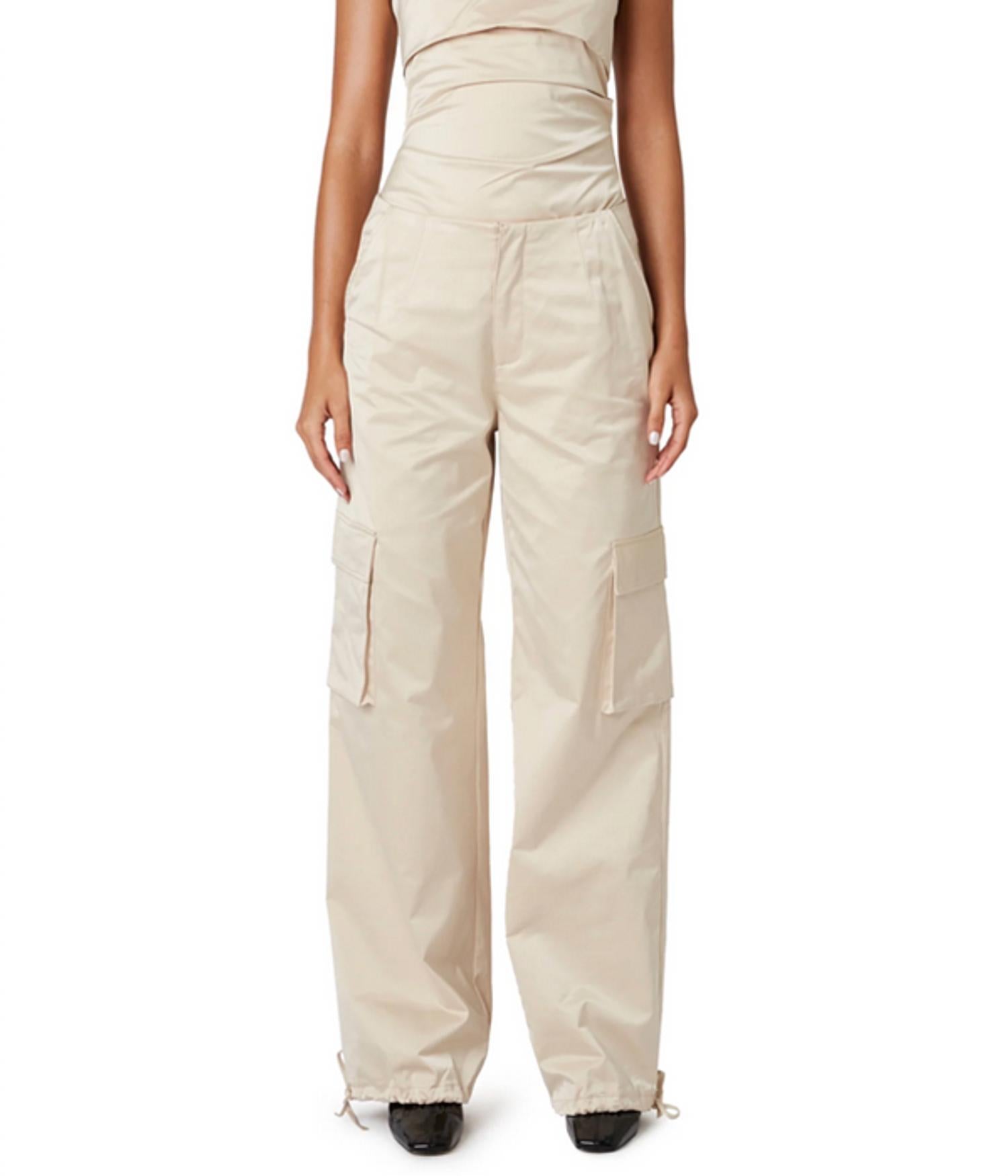 No gym necessary for these cool-girl joggers. Mid-rise parachute pants with cargo pockets and adjustable ties at waist and hem.  70%cotton 28%polyester 2%spandex
