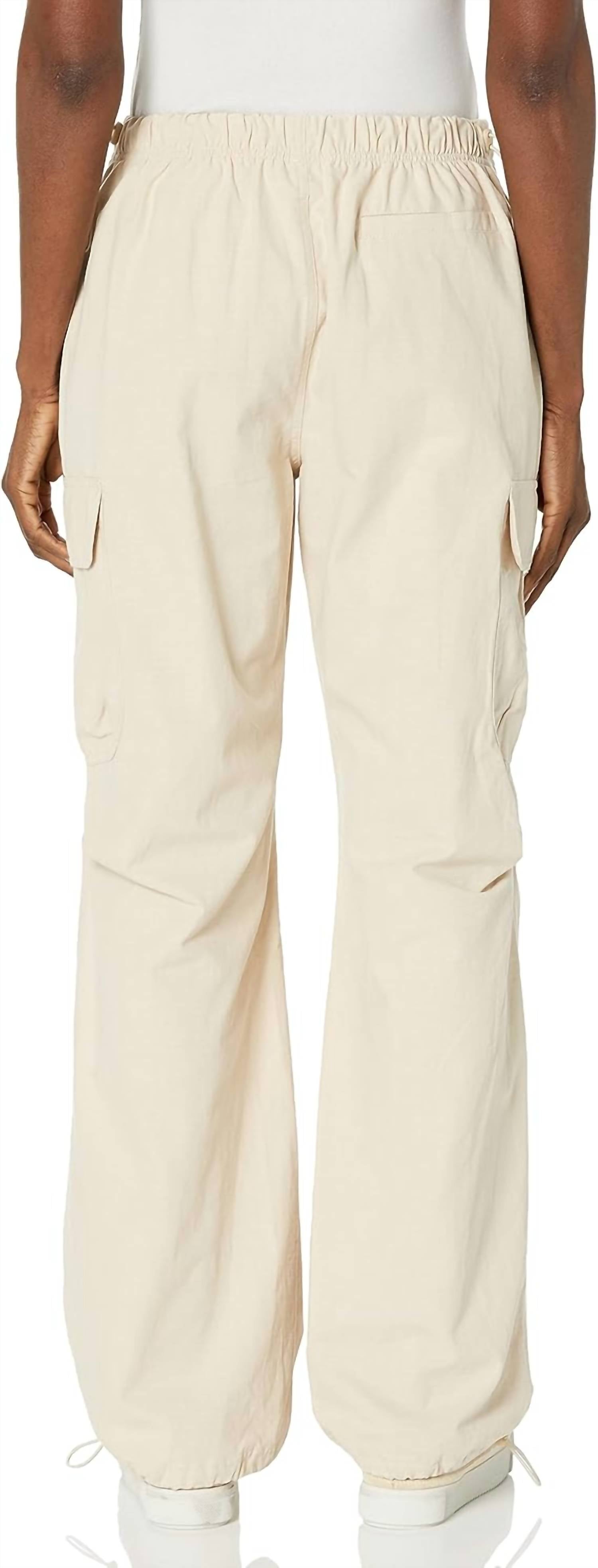 Pair these with your favorite sneakers for an effortlessly cool look. Introducing the Ludlow Parachute Pant by NIA, crafted for style and comfort in a crisp stone shade. These track pants feature a practical pull-on closure with wide legs and adjustable elastic toggles at the waist and hem. Made from a durable cotton blend with 63% cotton and 37% nylon, they offer a solid pattern and include pockets for added convenience. A perfect choice for versatile wear with its uncomplicated design and functional details.