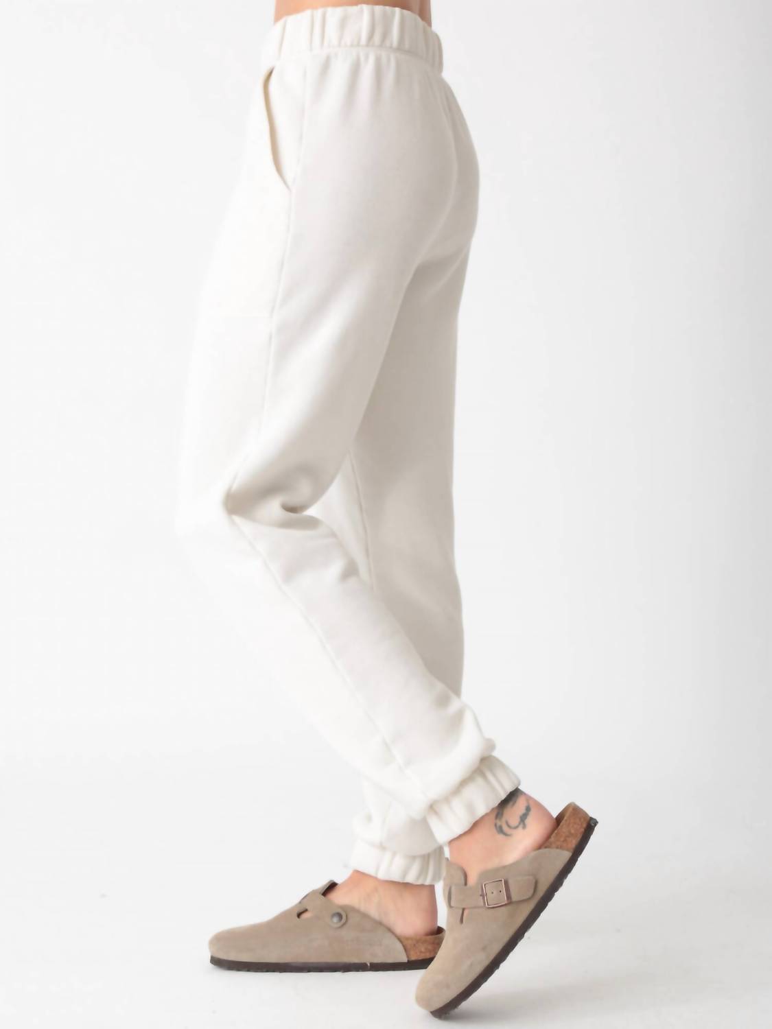 Experience ultimate comfort with the Hayden Sweatpant by Electric & Rose, crafted from an ultra-soft sherpa material with a cotton blend composition of 50% Polyester and 50% Cotton. Featuring a high-rise, regular fit with straight legs, these ivory pants come with a convenient pull-on closure and pockets for added functionality. Proudly made in the USA, these sweatpants are perfect for any casual outing. Care instructions are simple: Machine wash and tumble dry on low. Model is 5'9" wearing size small.