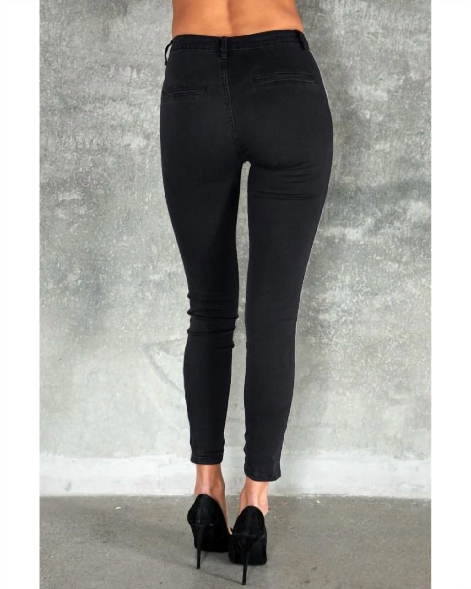 No gym necessary for these cool-girl joggers. Elevate your athleisure wardrobe with the Alessandra Silver Stripe Black Joggers by Venti6, perfect for adding flair to any outfit. These high-rise joggers offer a relaxed fit with a skinny leg style and feature a button closure. Crafted from a cotton blend composed of 68% cotton, 21% polyester, 9% viscose, and 2% elastane, they are designed for luxurious comfort. Made in Italy, this versatile piece combines a sophisticated solid black pattern with a metallic silver stripe detail.