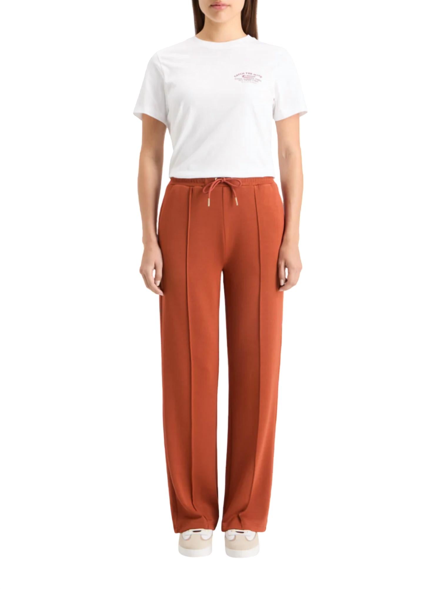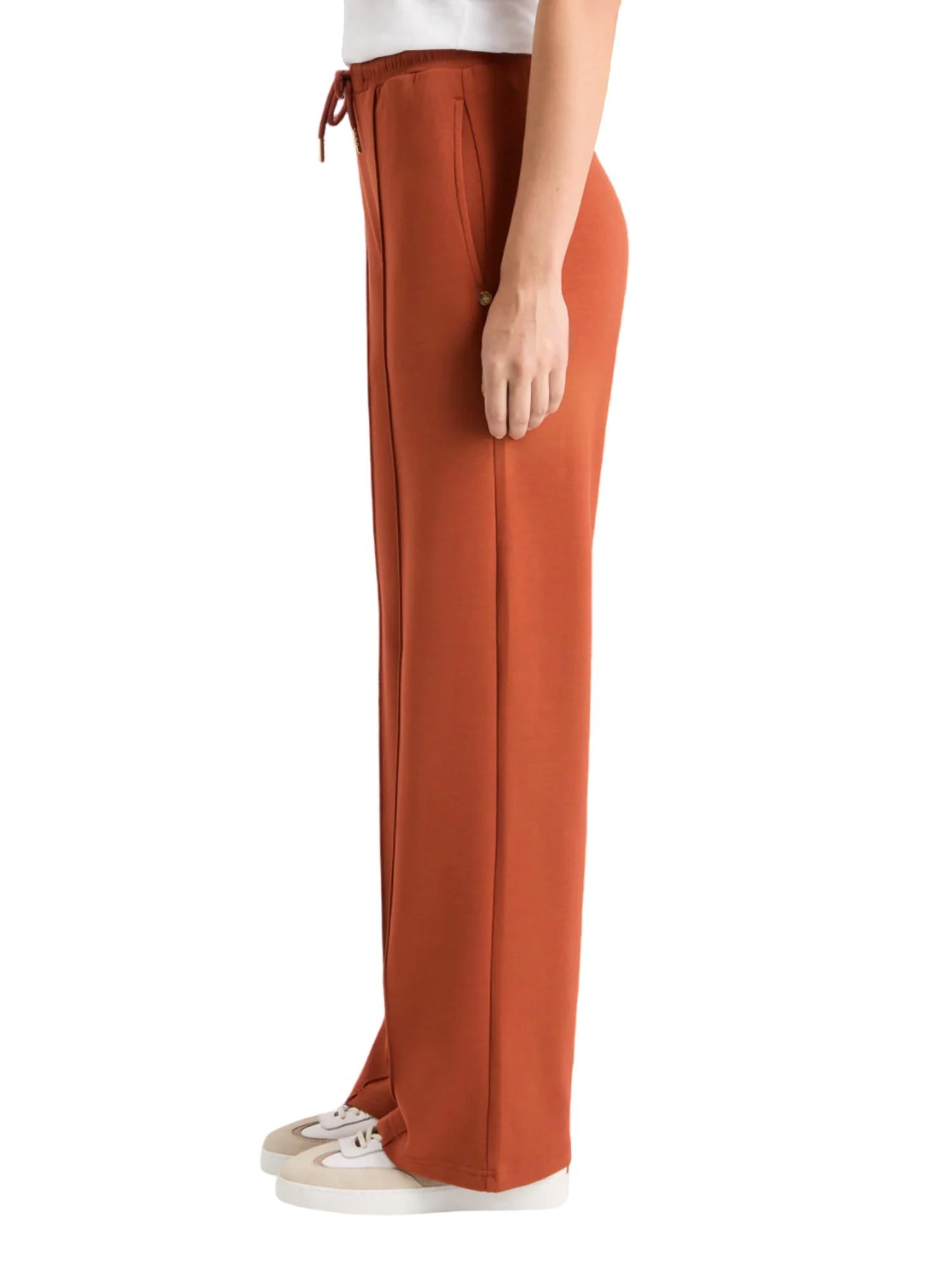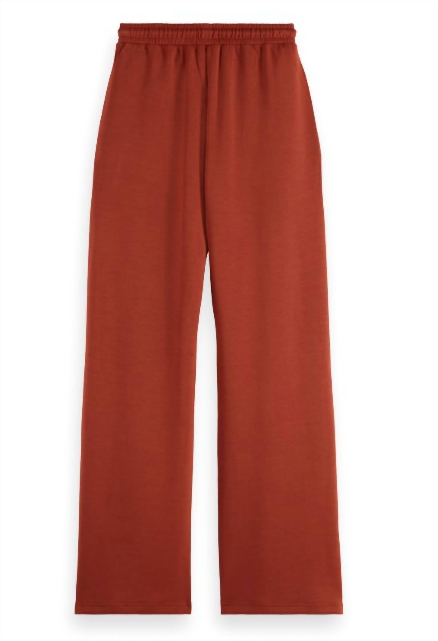 No gym necessary for these cool-girl joggers. Introducing the Modal Pin-Tuck Sweatpant by SCOTCH & SODA, a rust-hued loungewear staple designed to elevate your casual collection. Made from 100% cotton, these sweatpants boast a high-rise, relaxed fit with straight legs, offering a perfect blend of comfort and street-ready style. Featuring a solid pattern and convenient pockets, these track pants come with a pull-on closure for easy wear. Whether paired with an oversized hoodie or a sleek jacket, these versatile sweatpants are an essential addition to any wardrobe.