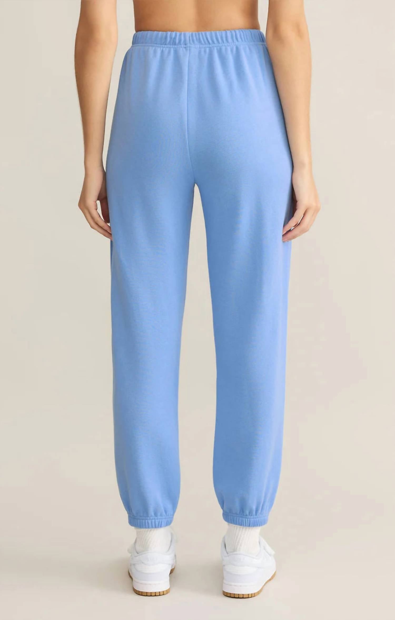 No gym necessary for these cool-girl joggers. Offered in a serene Blue River hue. Designed for ultimate coziness. High-rise joggers are crafted from midweight CVC fleece, comprising 60% Cotton and 40% Polyester. Pull-on closure ensures a relaxed fit. Complemented by side seam pockets and a straight leg, ankle-length silhouette. With a 27.5-inch inseam. Comfort-fit joggers are ideal for daily wear.