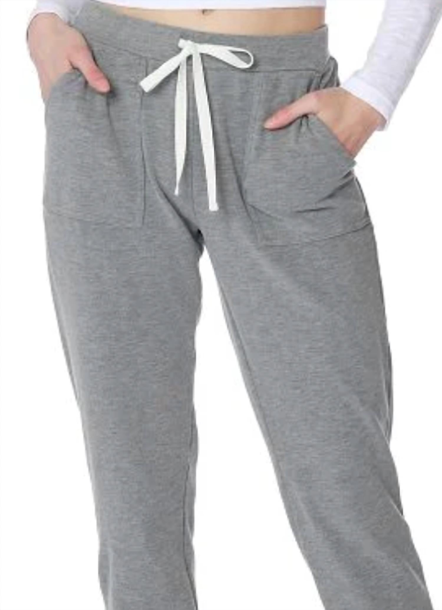The perfect pant for running around town and looking cool while doing it. Introducing the Jogger Sweatpant by Bobi, crafted for effortless style and comfort in trendy grey. These joggers feature a slim fit with a tapered leg and convenient front pockets, perfect for workouts or casual wear. Designed with a mid-rise and a secure tie closure, they embody the athleisure trend for the spring season. Whether hitting the gym or running errands, these joggers offer a versatile addition to your wardrobe.