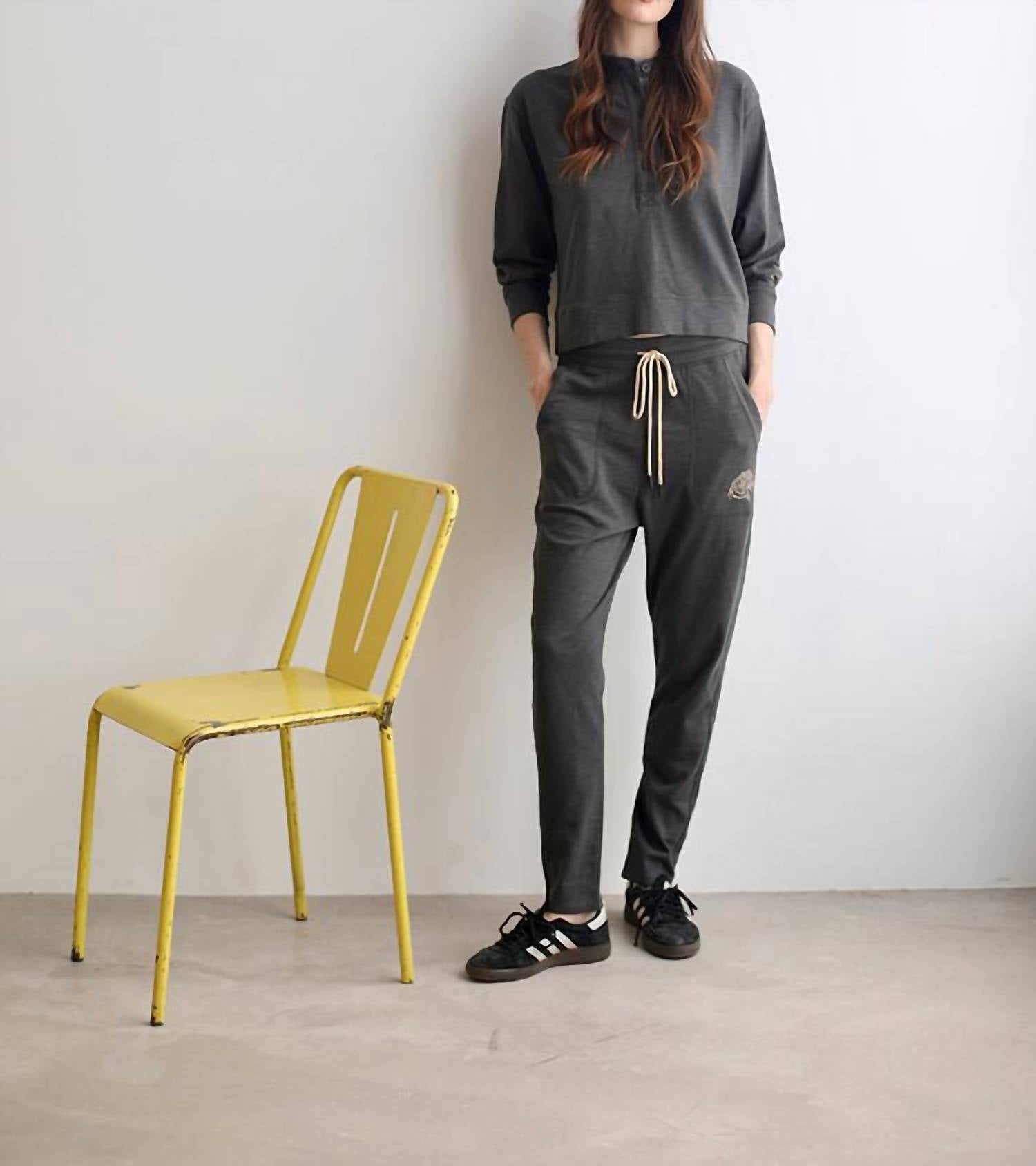 No gym necessary for these cool-girl joggers. Introducing the Drawstring Pants With Cheetah Embroidery by Las Sureñas, where comfort seamlessly meets chic streetwear style. These grey, solid-patterned jersey pants offer a classic fit with a skinny leg design and are equipped with two front pockets, one featuring a playful beige cheetah embroidery. Ideal for activewear, these pants feature a tie closure, perfect for summer outings or vacation wear. Embrace the athleisure trend by pairing them with the matching t-shirt for a coordinated look.
