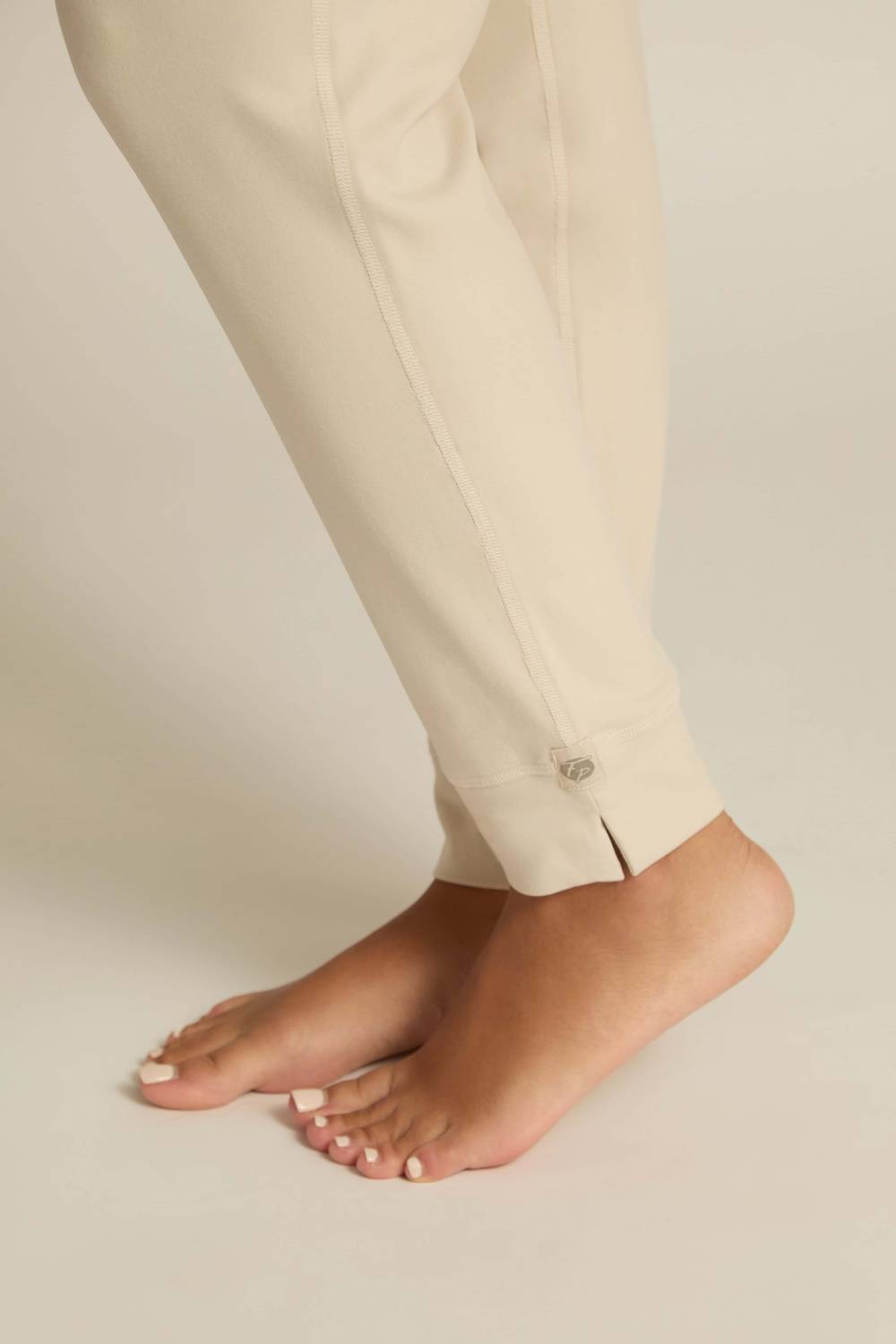 The perfect pant for running around town and looking cool while doing it. Embrace luxury with the Soft Jogger Pants by FACEPLANT DREAMS, crafted in a soothing oatmeal hue. These joggers feature a mid-rise elastic waist with a drawstring closure and an inseam of approximately 28 inches, perfect for women seeking comfort in minimalist style. Composition: 70% Sustainably Grown Bamboo Rayon, 30% Spandex, ensuring they are naturally breathable and moisture-wicking. Care: For best results, launder on a gentle cycle in cold water with like colors and tumble dry low or dry flat.
